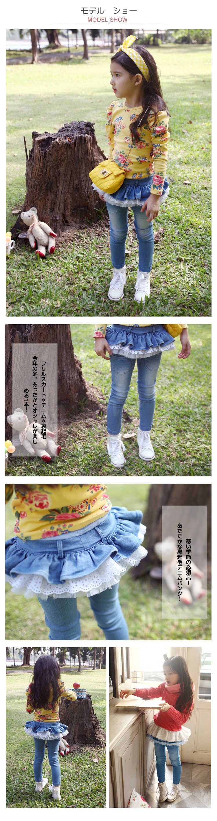 | フリルスカート*デニム*裏起毛 今年の冬、あったかとオシャレが楽しめる1本! 寒い季節の必須品! あたたかな裏起毛デニムパンツ! かわいいミニスカート付きなので 穿く瞬間に女の子のかわいさを演出してくれる! 秋冬の裏起毛タイプと春秋タイプの裏ボアないの2種類選べる! ロンティ、チュニックと合わせやすいパンツです 1本あれば便利なアイテム間違いなし! | |