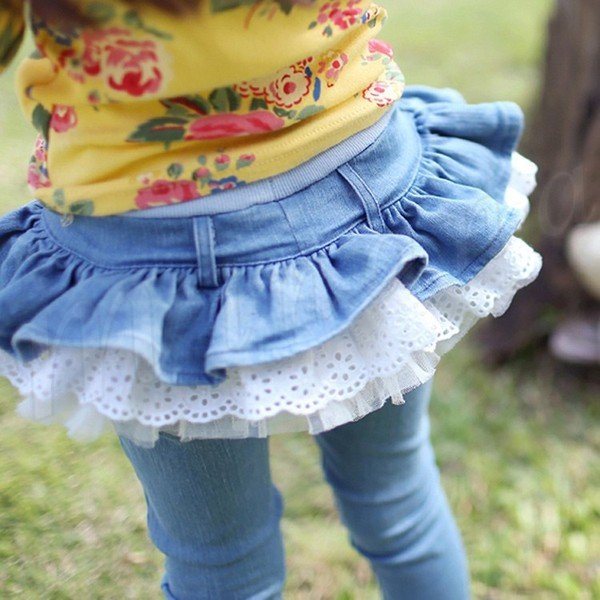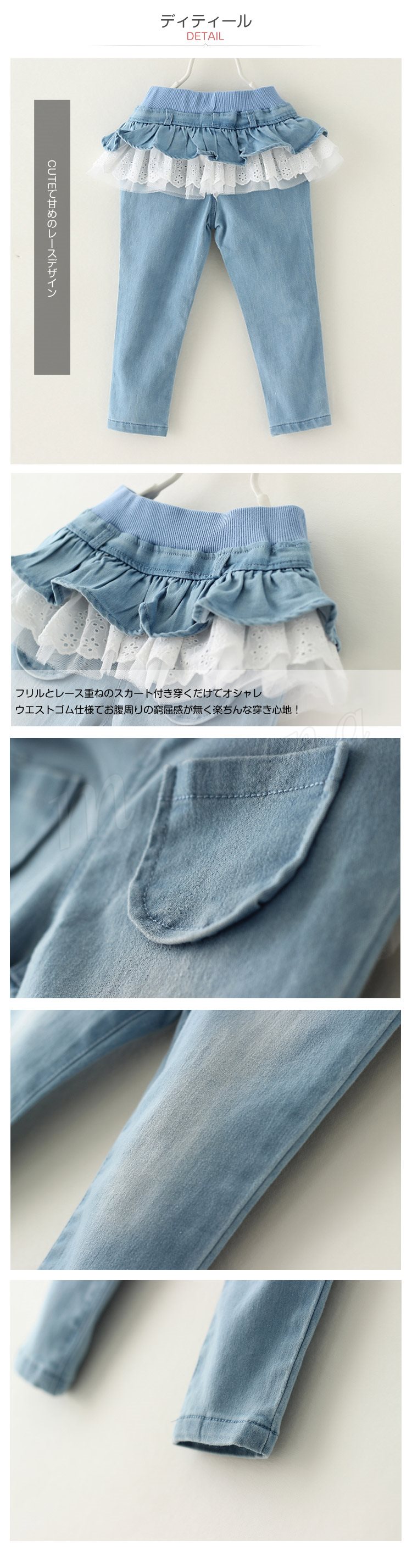 2色2タイプ選べる!キッズ 春新作 デニム スカート付き 女の子 子供 デニムパンツ キッズ パンツ デニム ロングパンツ 子供用