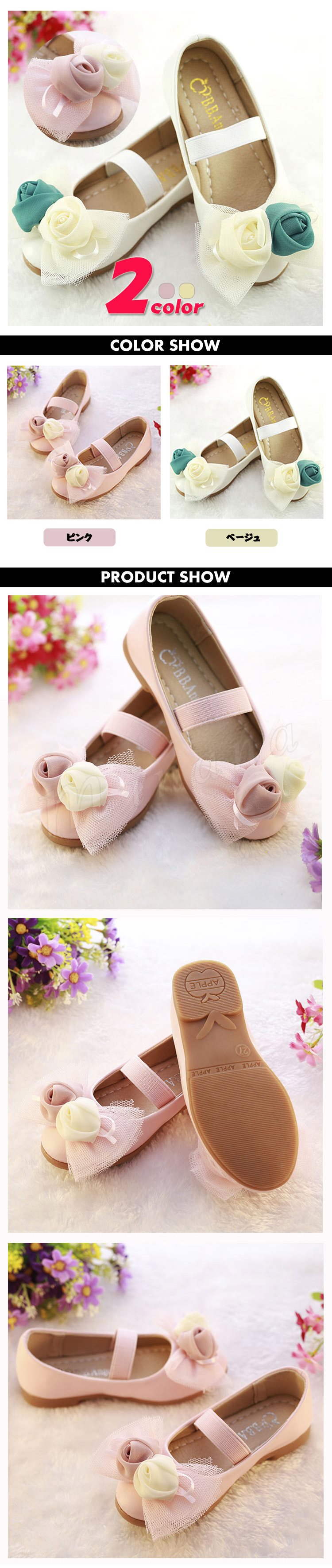 | フロントは花飾りがかわいいフェミニンテイストのジュニアサンダル! | |