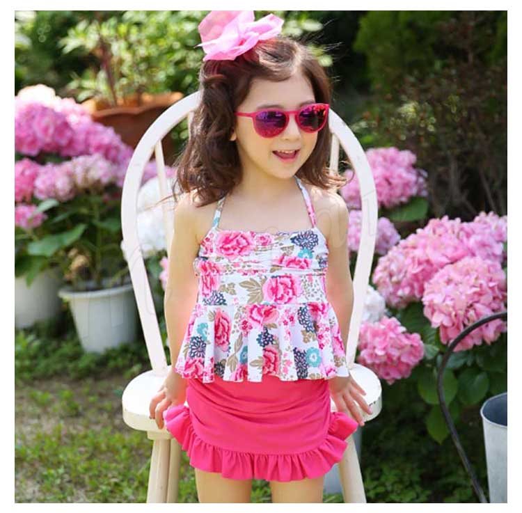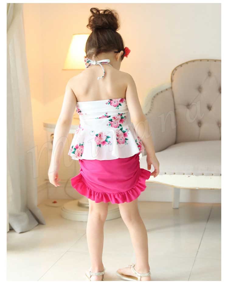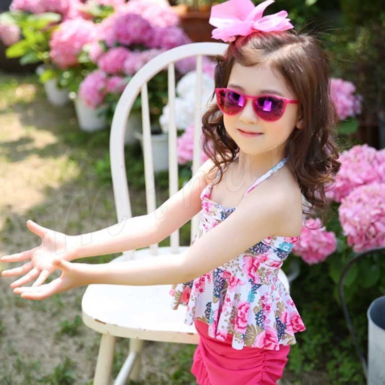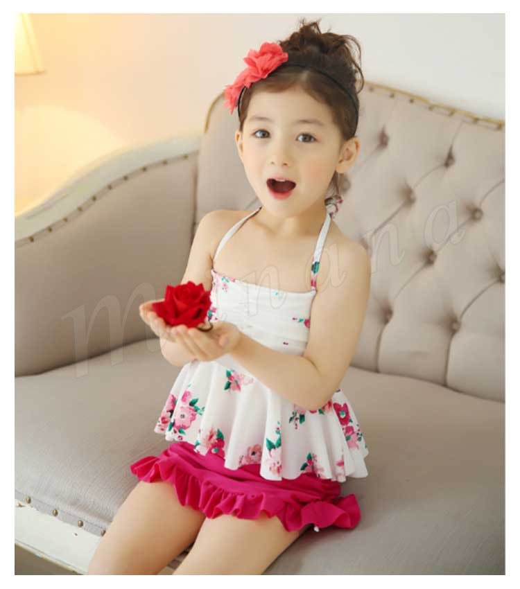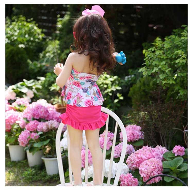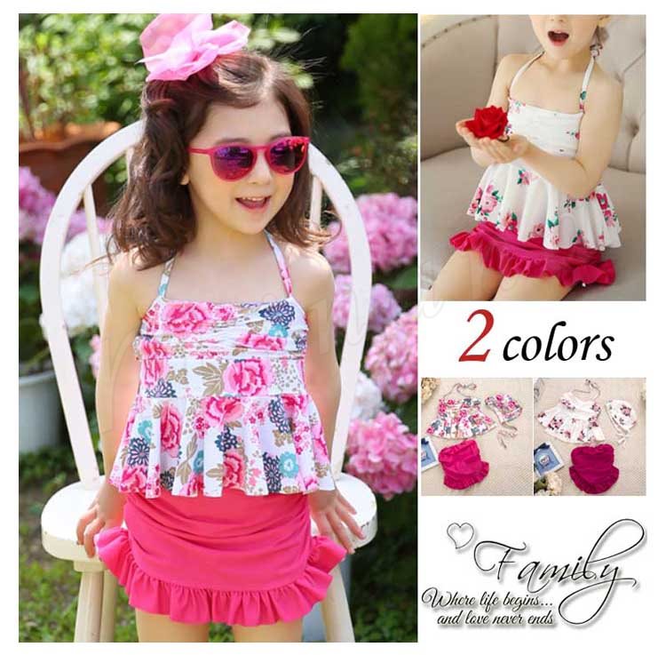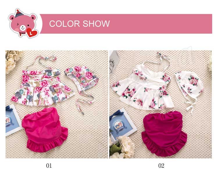水着 女の子 子供 こども 女児 スイムウェア スクール プール ビーチ 夏 海水浴 ベビー ビキニ セパレート 帽子 3点セット 花柄 フ