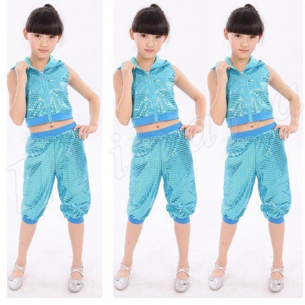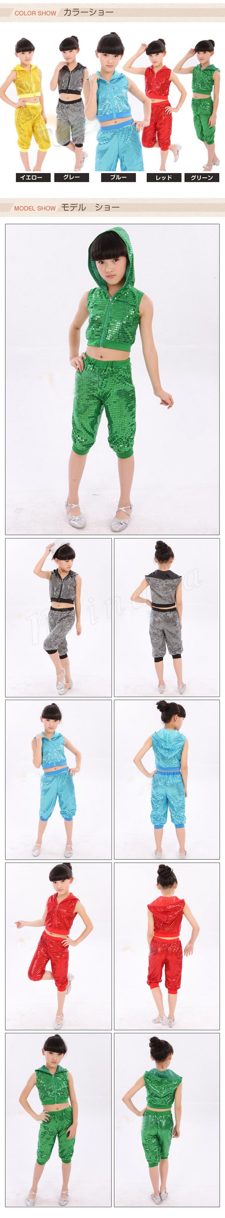 送料無料上下2点セット セットアップ スパンコール ダンス衣装 スーツ 女の子 チュチュスカート へそ出し フード付き ステージ ヒップホップ ジ