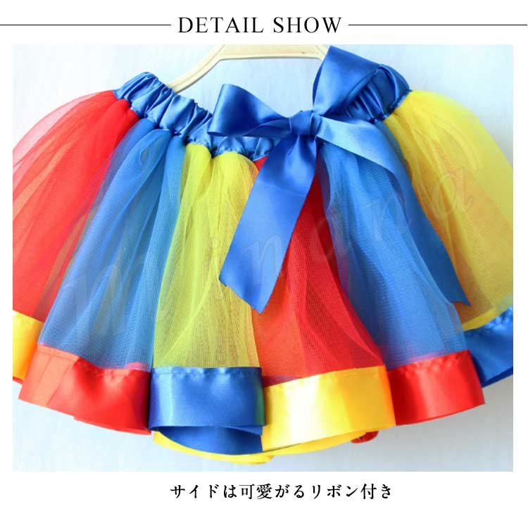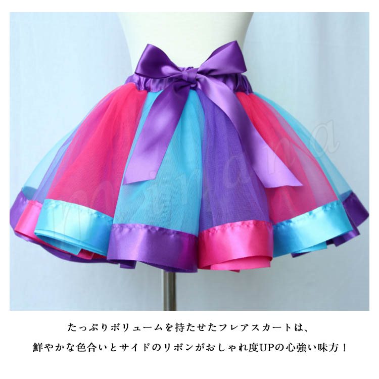 | 虹のようなカラフルカラー、コーデを華やかに演出するチュールスカートです。 たっぷりボリュームを持たせたフレアスカートは、鮮やかな色合いとサイドのリボンがおしゃれ度UPの心強い味方! 発色の良いビビッドカラーは、イベント会場や遊園地でもお目立ち間違いなし♪ こんなシーンにどうぞ:遊園地でのリンクコーデ・双子コーデ、ライブ、コンサート、ハロウィン、カラーラン、文化祭、ダンス衣装 | |