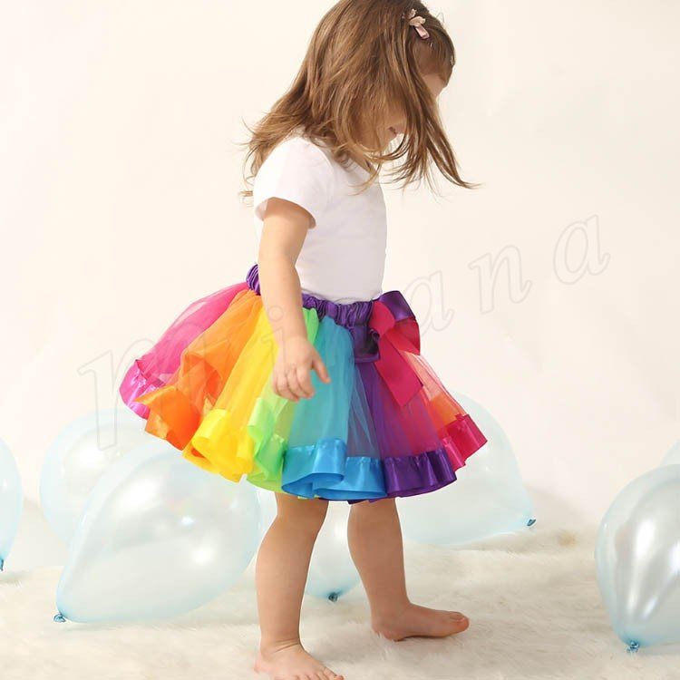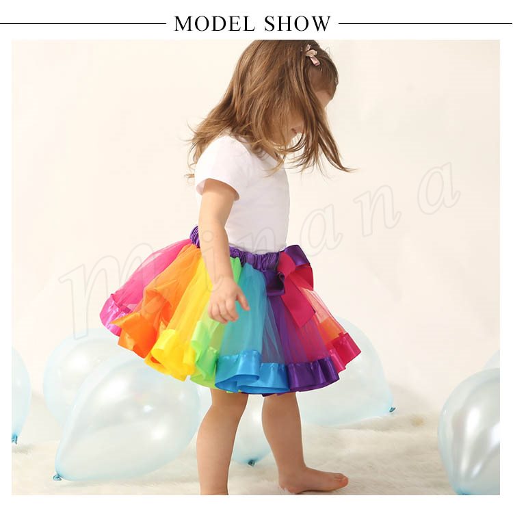 虹のようなカラフルカラー、コーデを華やかに演出するチュールスカートです。
