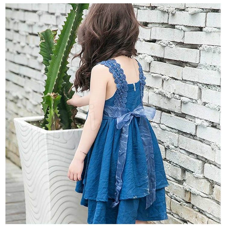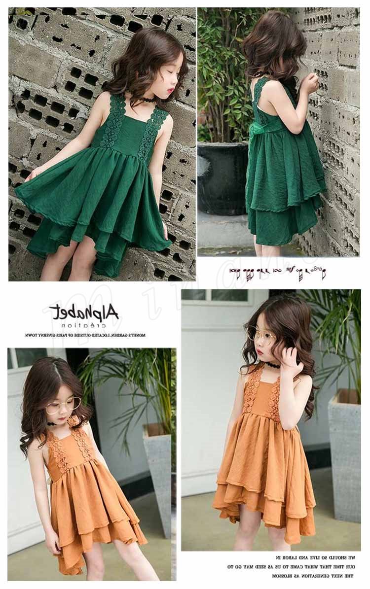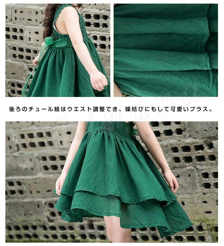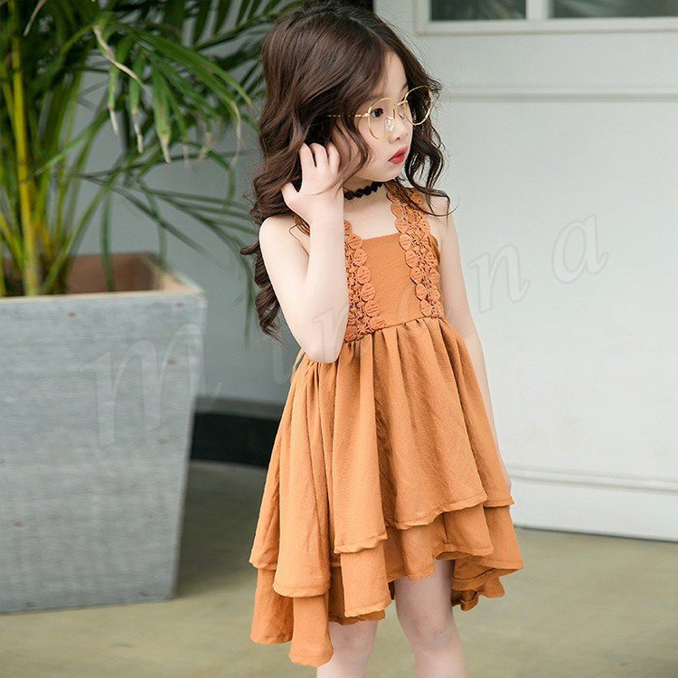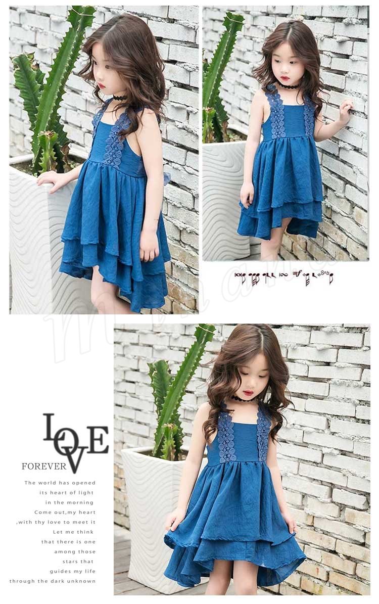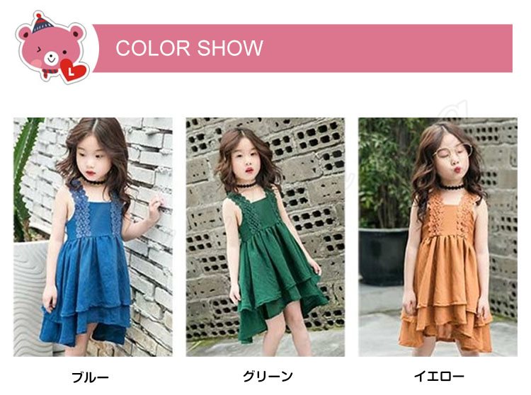 お洒落でスイートなキャミソールワンピース キッズノースリーブワンピース アシンメトリーワンピース 女の子 スクエアネック レース肩紐 シンプル