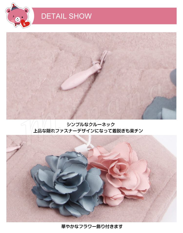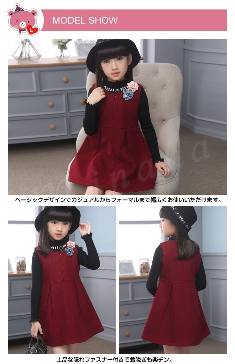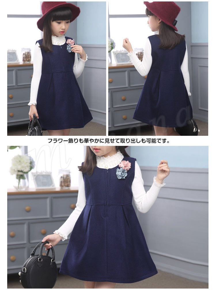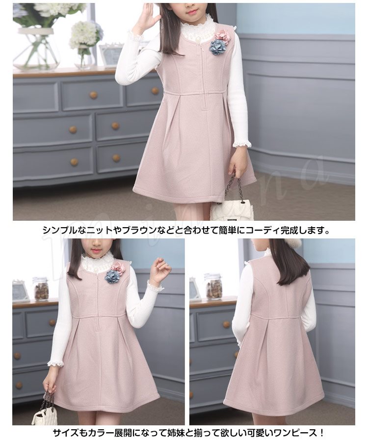 | シンプルなデザインに、フラワー飾りの子供ワンピースが登場! ベーシックデザインでカジュアルからフォーマルまで幅広くお使いいただけます。 上品な隠れファスナー付きで着脱ぎも楽チン。 フラワー飾りも華やかに見せて取り出しも可能です。 シンプルなニットやブラウンなどと合わせて簡単にコーディ完成します。 サイズもカラー展開になって姉妹と揃って欲しい可愛いワンピース! | |