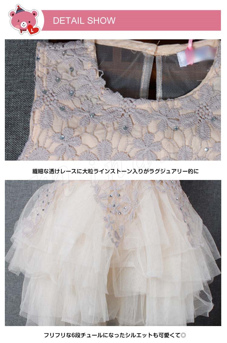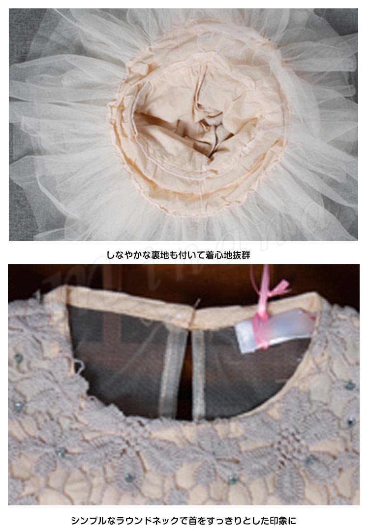 大粒ラインストーン透けレース&チュール切り替えキッズ用ドレス