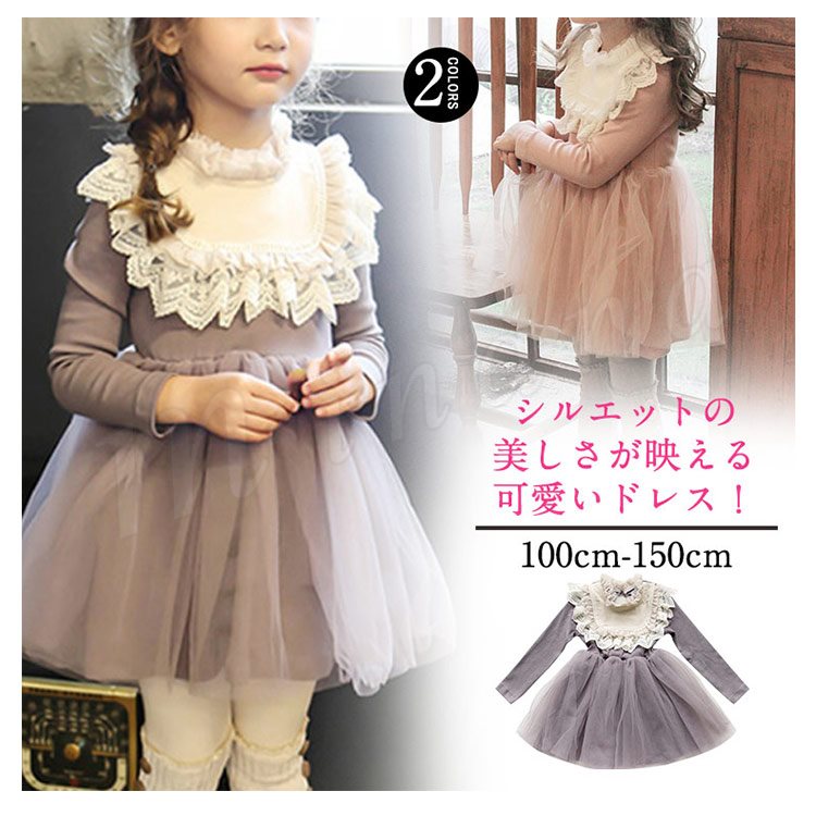 子供ワンピース キッズワンピース ドレス フリル レース ワンピース 子供 キッズ チュールワンピース フォーマルワンピース 100cm 1