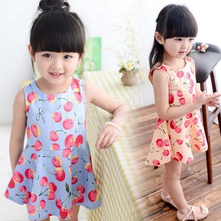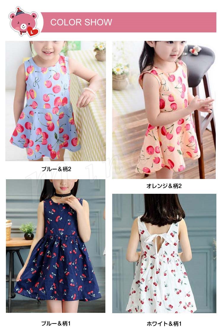 チェリー柄 子供ワンピース ノースリーブ タンクワンピース フレアワンピース 子供 キッズ 可愛い 女の子 ワンピース 子供服