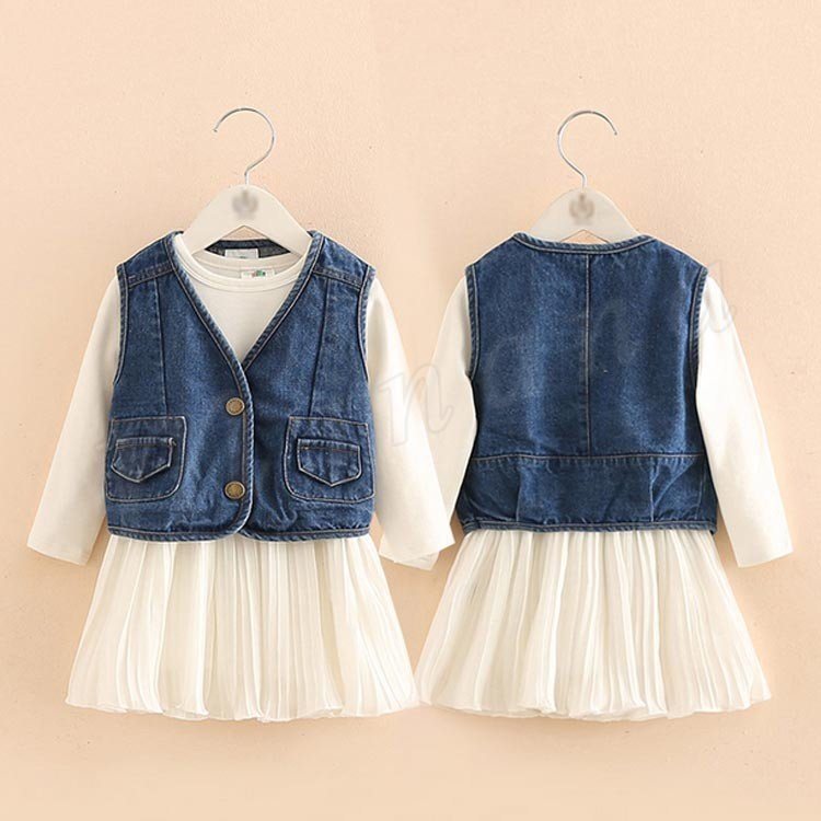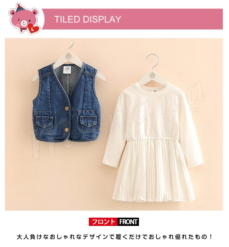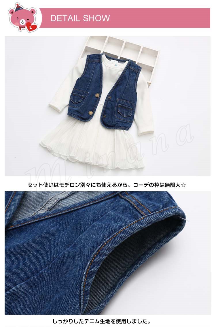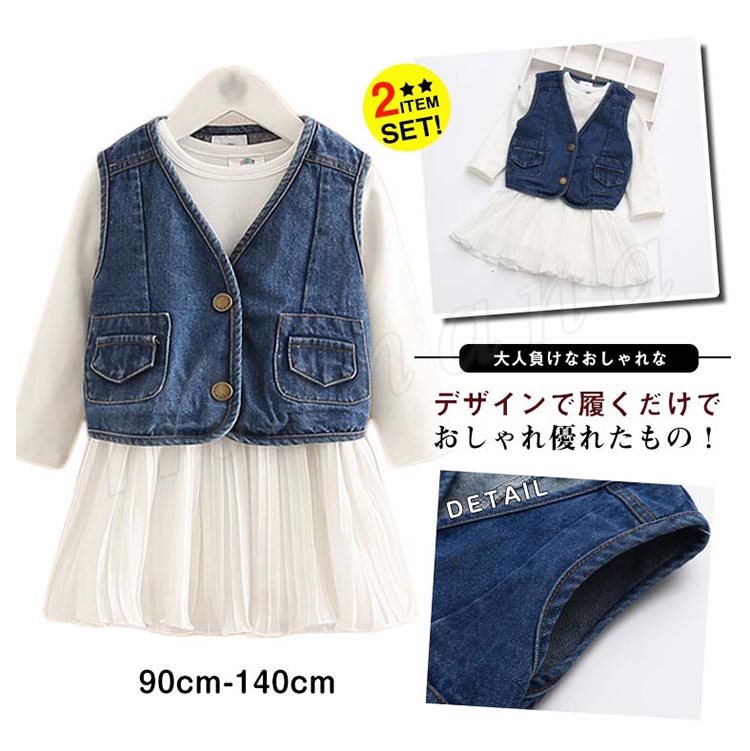 女の子 デニムベスト+ワンピース 2点セット 子供ワンピース 子供 キッズ フレアワンピース 子供服