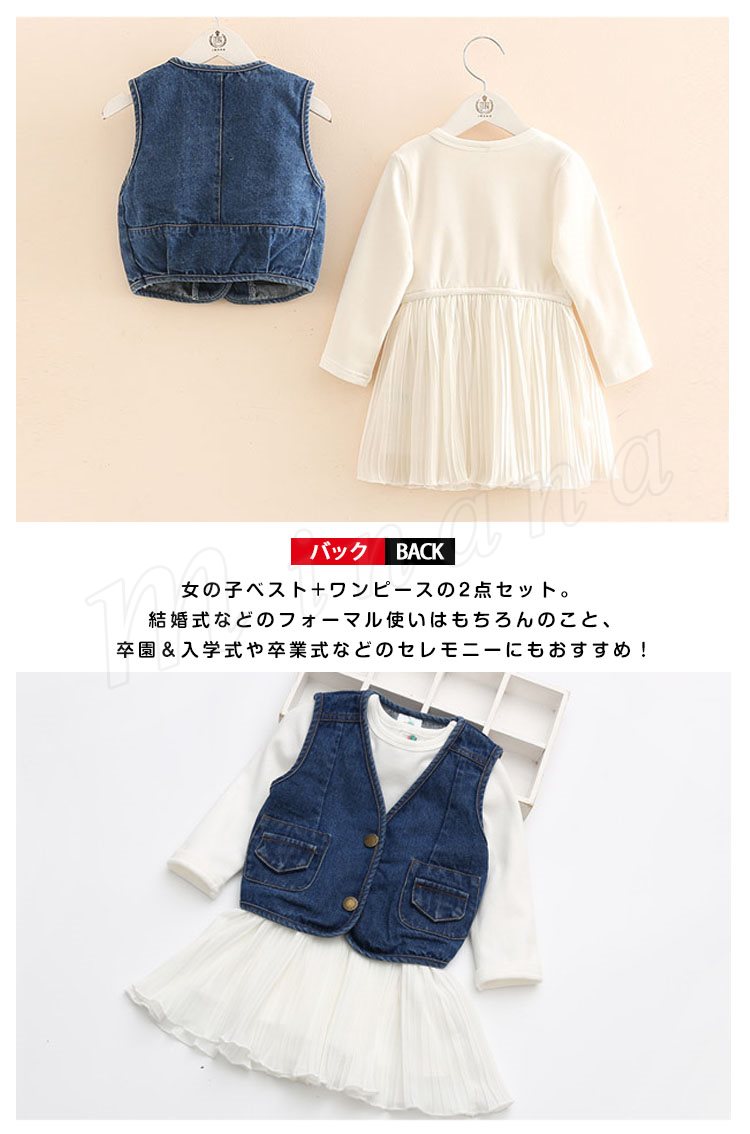 | 大人負けなおしゃれなデザインで履くだけでおしゃれ優れたもの! 女の子ベスト+ワンピースの2点セット。 結婚式などのフォーマル使いはもちろんのこと、卒園&入学式や卒業式などのセレモニーにもおすすめ! | |