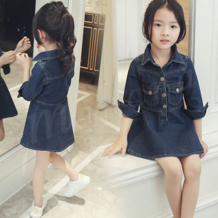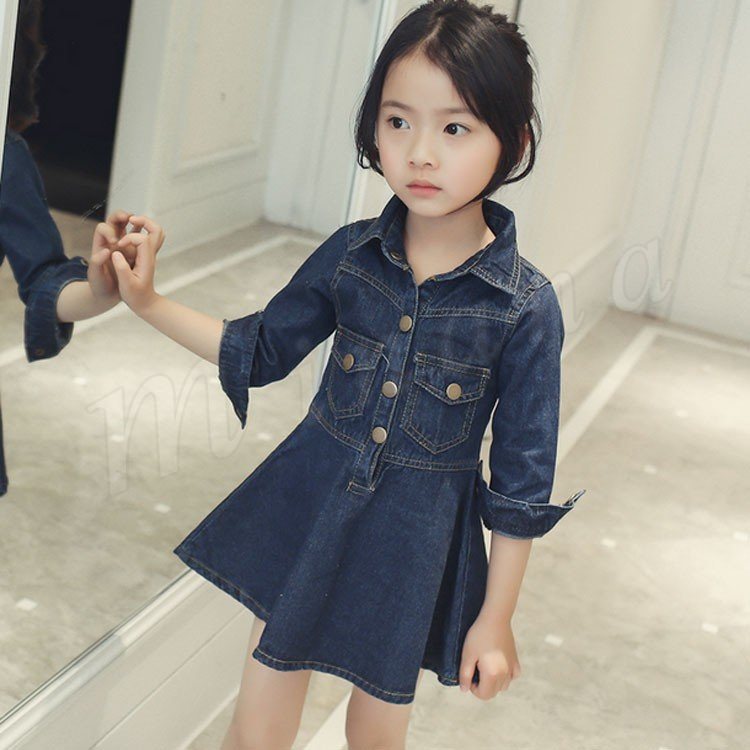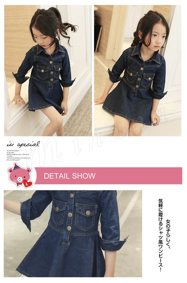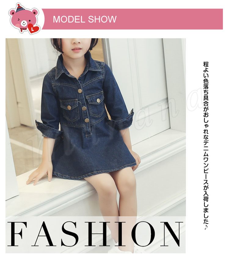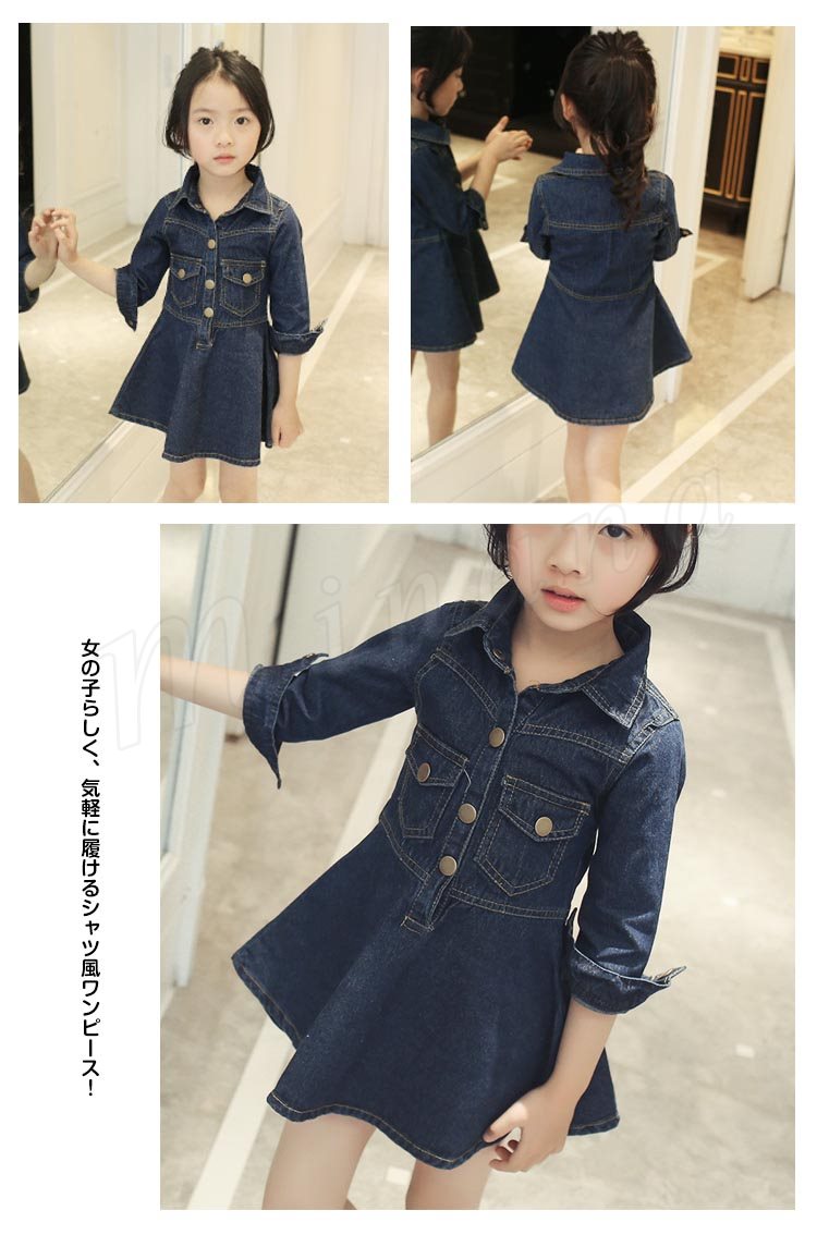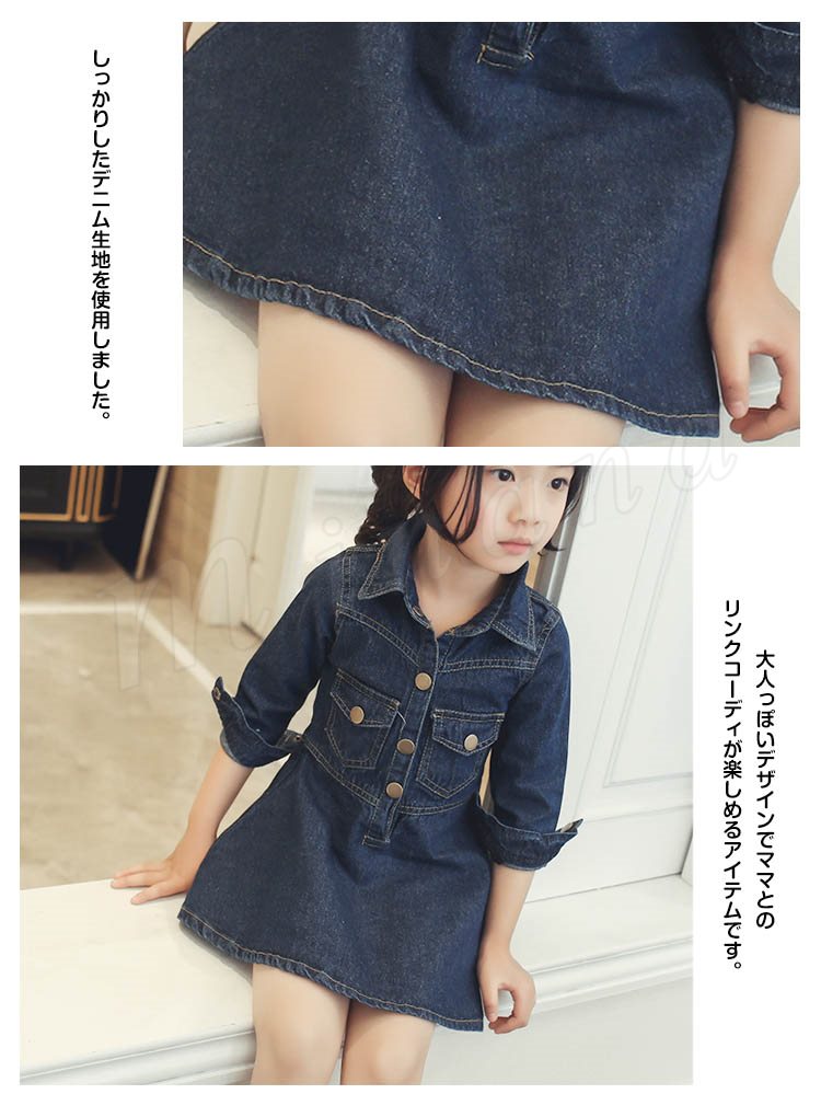 女の子 デニムワンピース 子供 キッズ デニム シャツワンピース 7分袖 デニム ワンピース 子供服 ZOKO