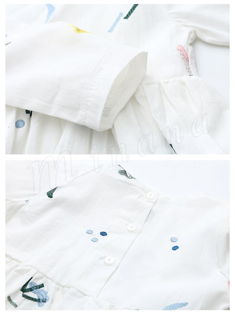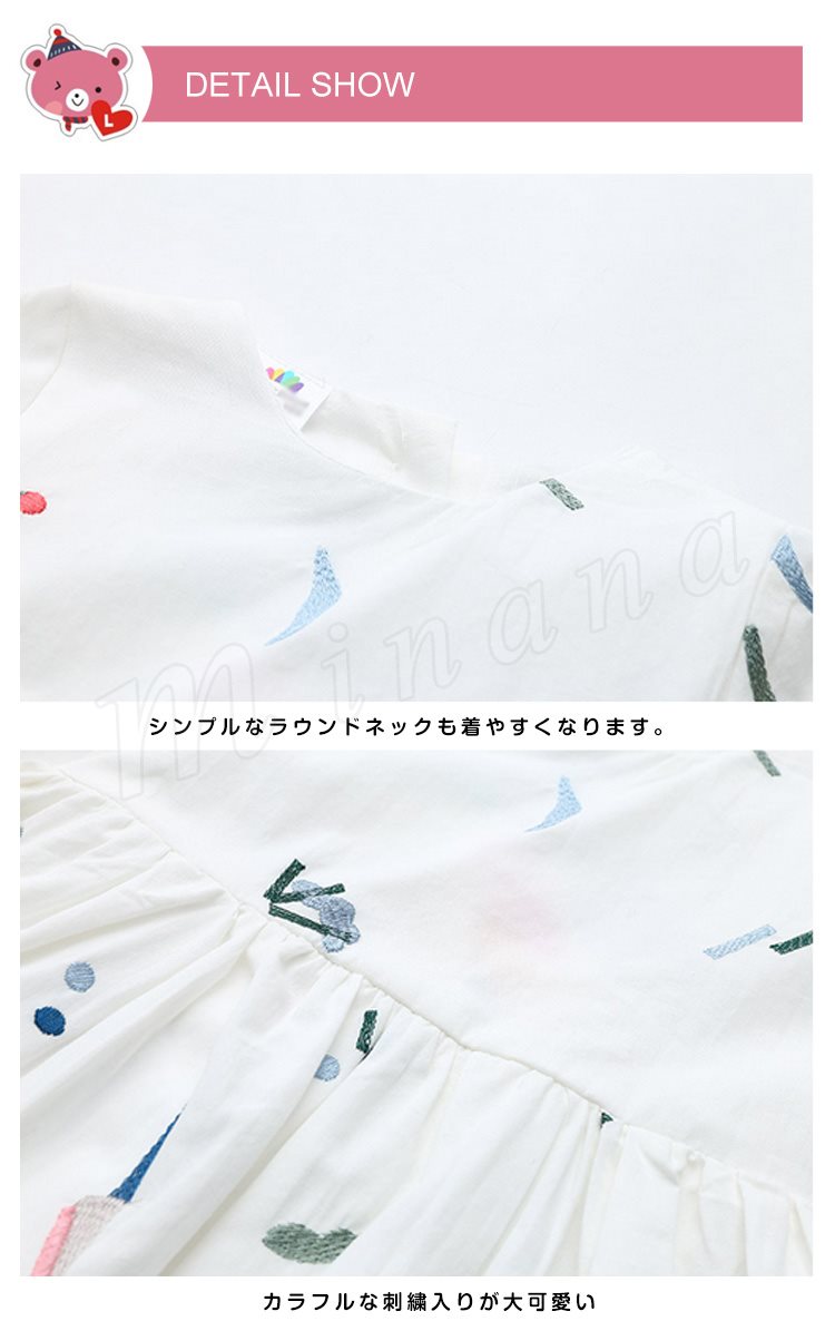 カラフル刺繍入りが大カワイイ。子供ワンピース ワンピース キッズ 子供服 女の子 長袖ワンピース 刺繍入り Aライン コットンワンピース 9