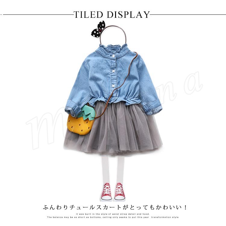 | デニムシャツとチュールスカートの切り替えになったワンピースです★ ふんわりチュールスカートがとってもかわいい! たっぷりフレアで女の子が大好きなシルエットに仕上がりました。 | |