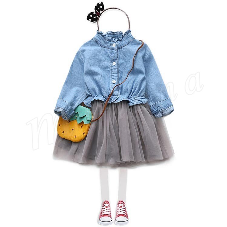 デニムシャツとチュールスカートの切り替えになったワンピースです★
