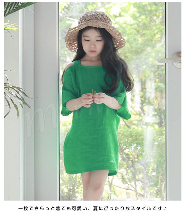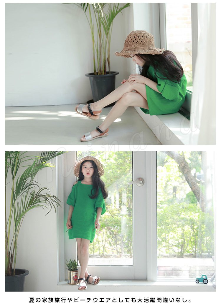 | COOL清涼感【涼感】夏でも涼しい! 肩あきがちょっぴりSEXYなワンピース登場。 程度よく肩あきになってちょっぴり可愛さを演出してくれます。 キッズサイズからママサイズまで展開になっています。 夏の家族旅行やビーチウエアとしても大活躍間違いなし。 一枚でさらっと着ても可愛い、夏にぴったりなスタイルです♪ | |