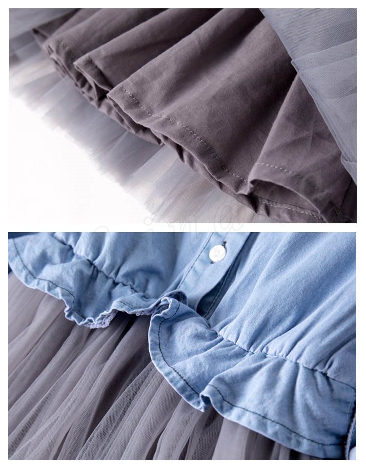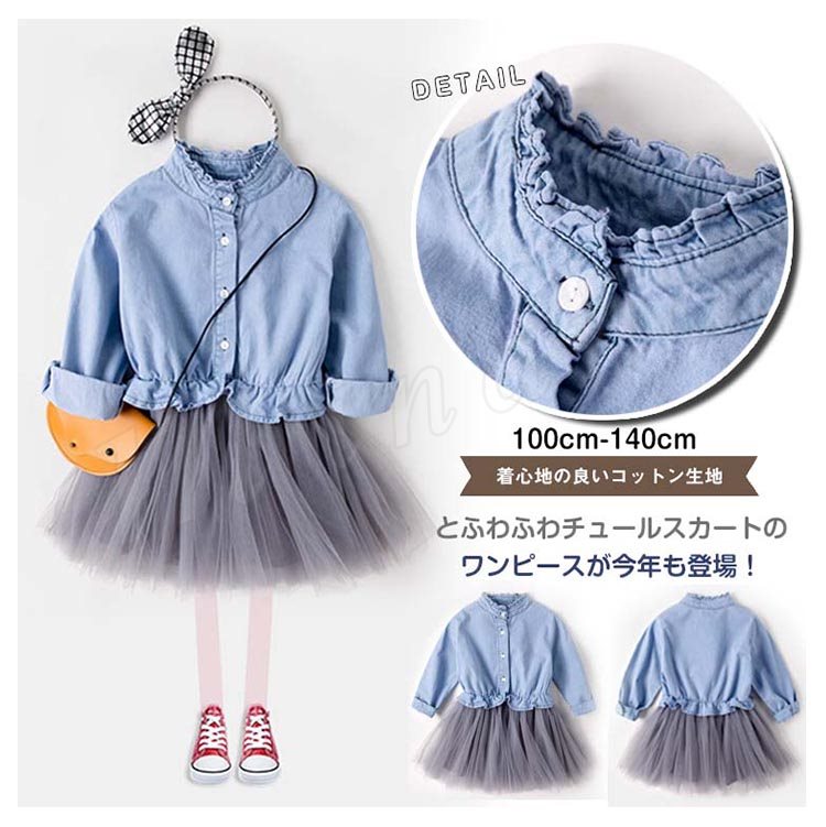 子供ワンピース キッズ ワンピース チュールワンピース 異素材切り替え ドッキング 長袖ワンピース 子供服 キッズ ジュニア 女の子 チュー