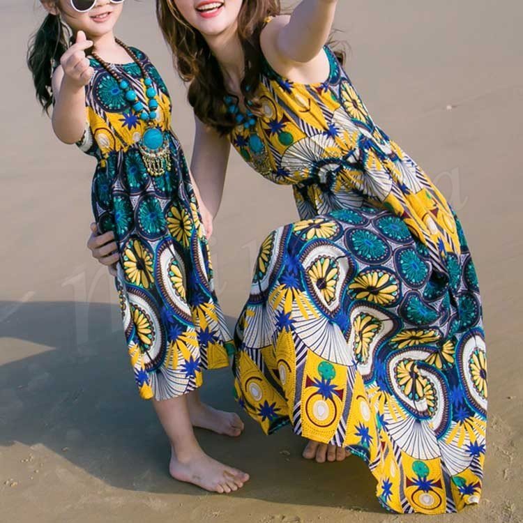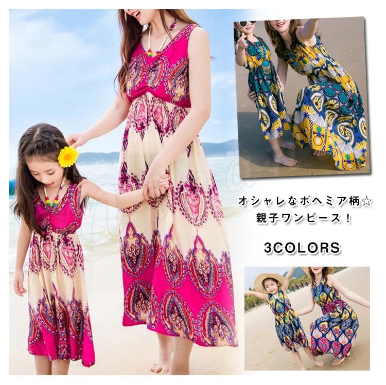 | オシャレなボヘミア柄☆親子ワンピース! 夏を満喫できる大人かわいいロング丈シフォンワンピース♪ なかなか見られない存在感のある柄使いや色合いは夏のおしゃれガールにピッタリ! 大胆な肌露出するキャミタイプも爽やかで季節感を演出してくれます。 キッズサイズからママサイズまで展開になっています。 夏の家族旅行のビーチウエアとしても大活躍間違いなし。 一枚でさらっと着ても可愛い、夏にぴったりなスタイルです♪ | |