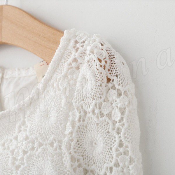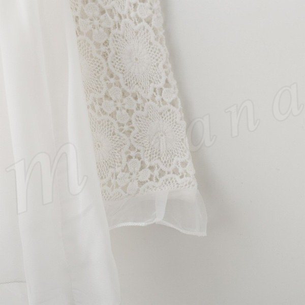 | 落ち着いたベージュに近いオフホワイトのレース生地で、 しっとりとしたかわいらしさのお嬢様ワンピースの登場です! ハイウエストの切り替えでタックを寄せ、 ふんわりと空気感のあるスカートに。 裾切り替え部分にはふんわりのチュールを使いで 淡い色の中で、全体を引き締めます。 袖口には幅広のレース&チュールが付いており、 ゆったりと広がってラッパ袖のようになっています。 スカートは全体に裏地が付いてい (柔らかいベージュの、しっかりとした生地です)透けにくくてよい着心地! | |