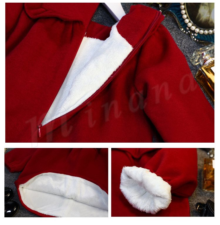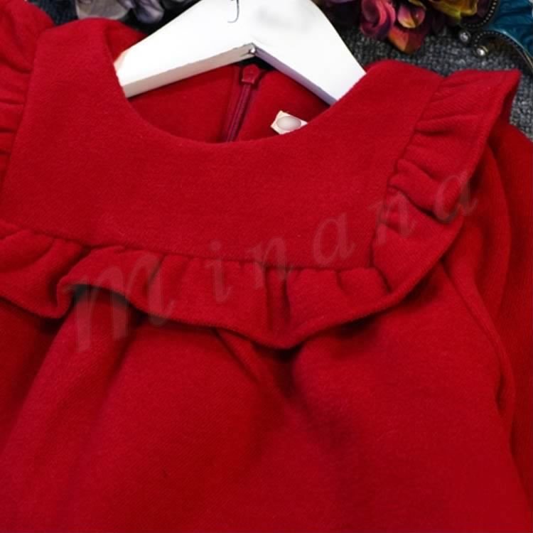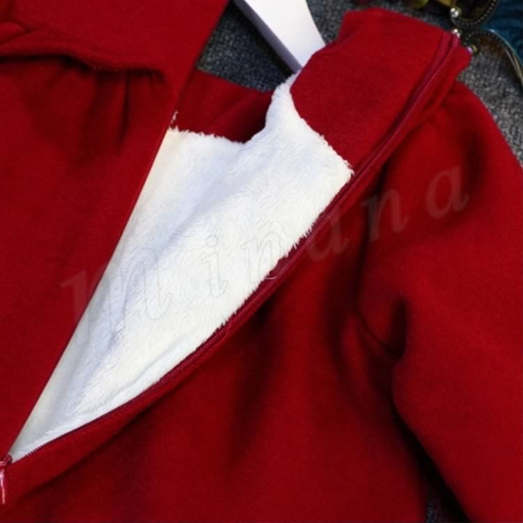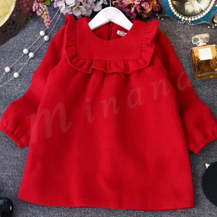 送料無料ワンピース 長袖 無地 クルーネック レッドワンピース 子供ワンピ チュニックワンピース ショート丈 キッズ ゆったり 裏起毛 ラシャ
