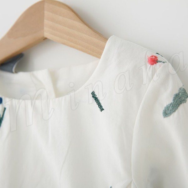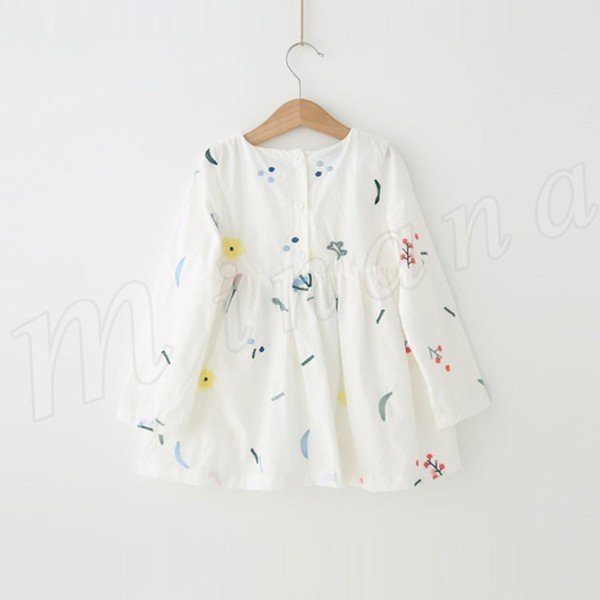 送料無料ワンピース 長袖 ミニワンピース チュニック 子供服 刺繍飾り クルーネック ゆったり 花飾り スウェット シンプル シンプル