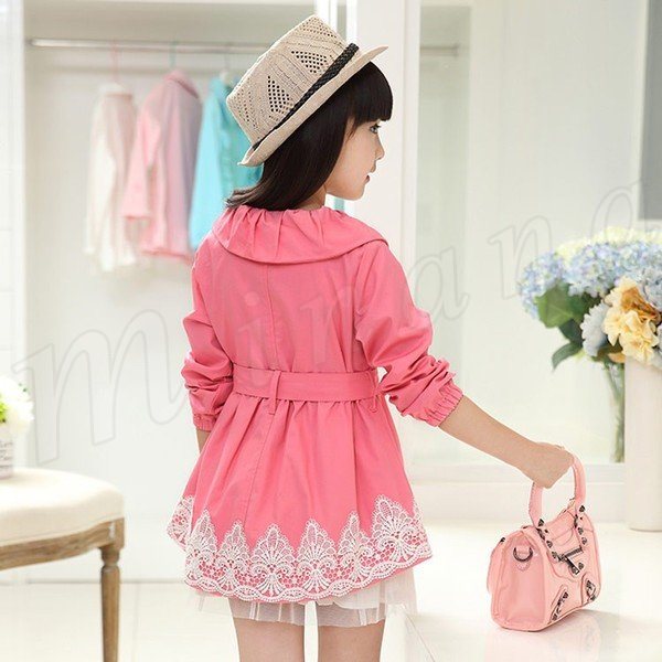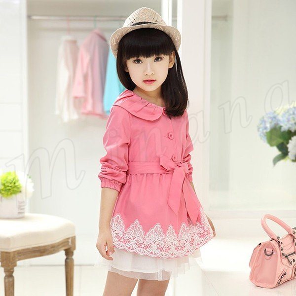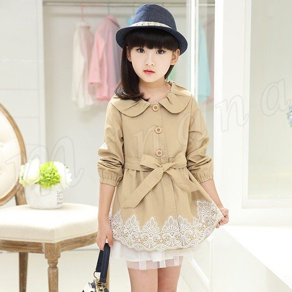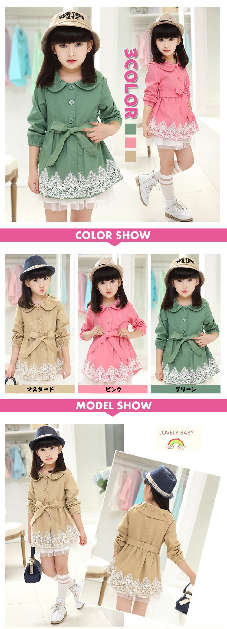送料無料子供服 トップス 女の子 姫様 秋 長袖 ワンピース アウター Aライン フレア 花飾り ボタン コート ミディア バイカラー ファション シ