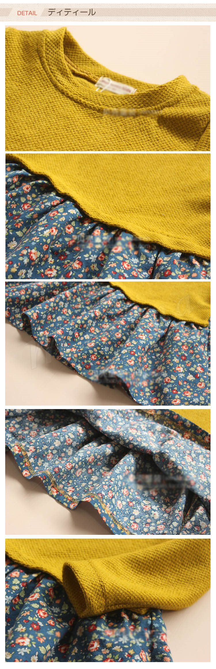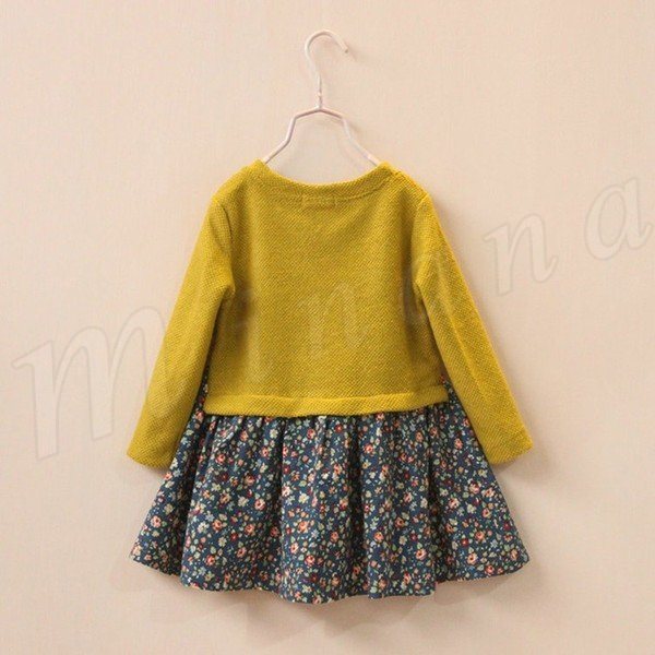 送料無料ニットワンピ ワンピース フェイクレイヤード 花柄 長袖ワンピ 女の子 女児 小柄 ニット 切替 ショートワンピ ふんわり シルエット おしゃ