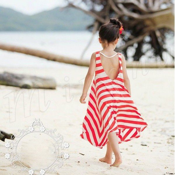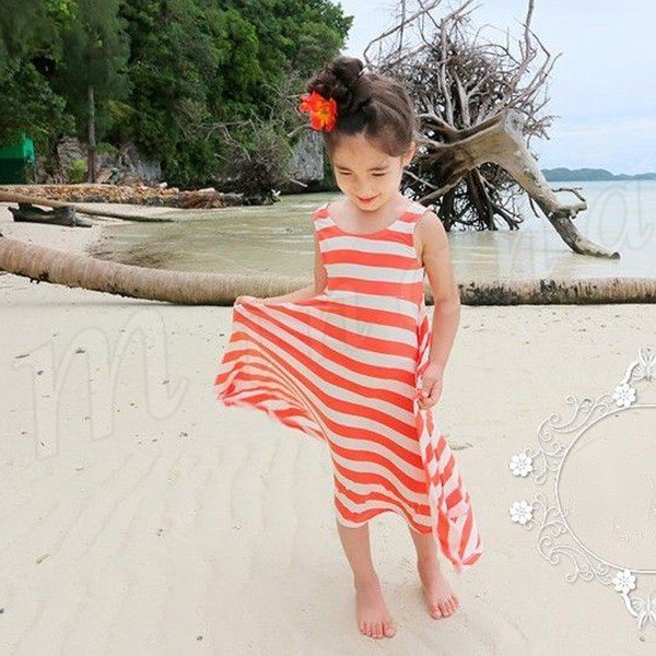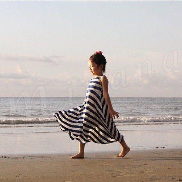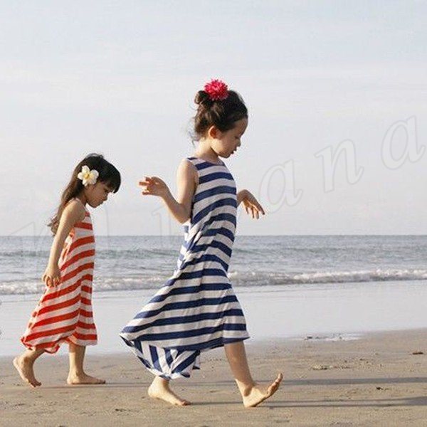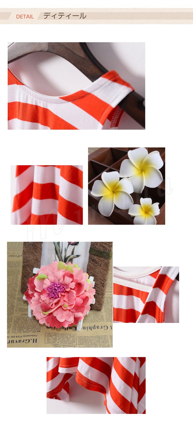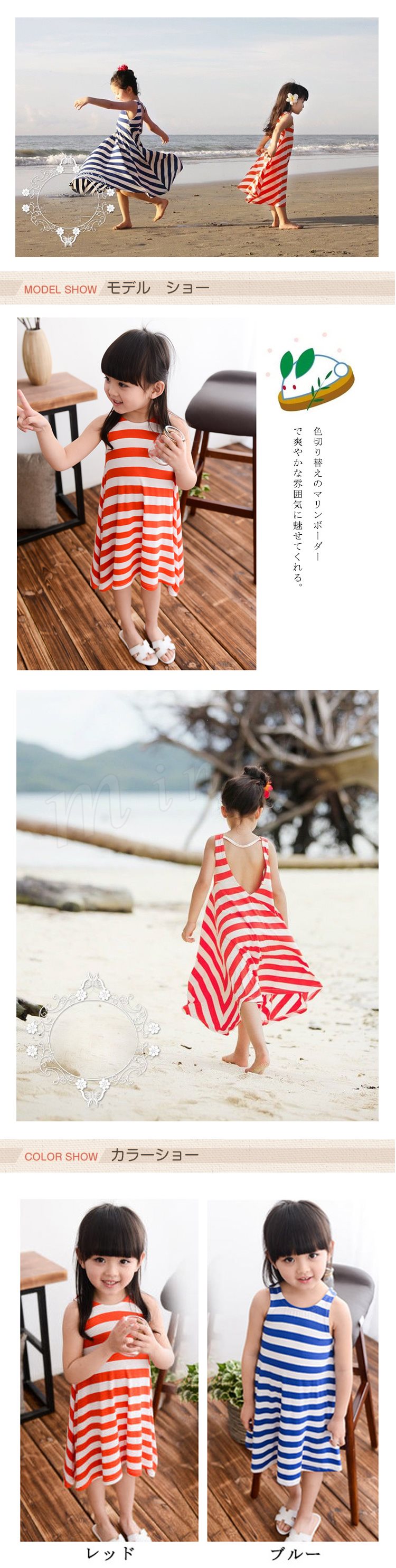 ワンピース ボーダー柄 太いボーダー 背中見せ 色切り替え マキシ丈 ロング 子供ワンピース 子供服 ノースリーブ 袖なし 親子 ペアルック