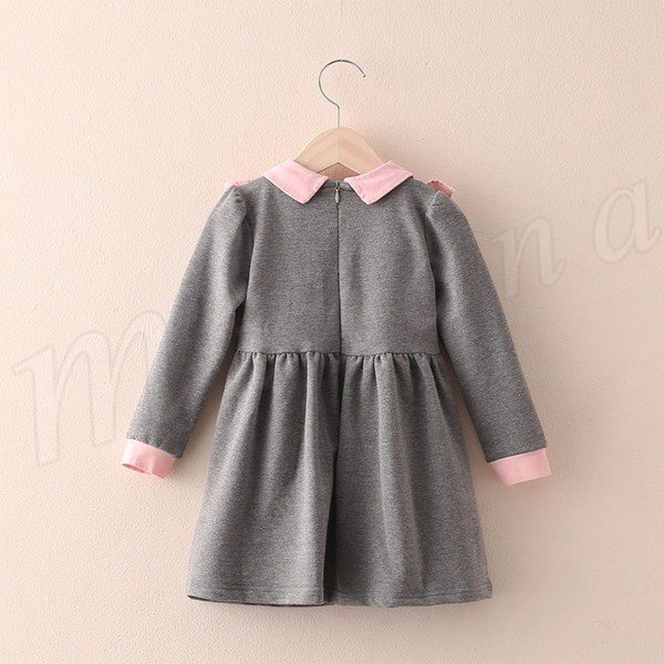 送料無料イギリススタイル 長袖ワンピ ボタン飾り ショートワンピース プリーツ 膝丈 キッズ 女の子 カジュアル ベビー 上品 スカラップ 韓国 韓国