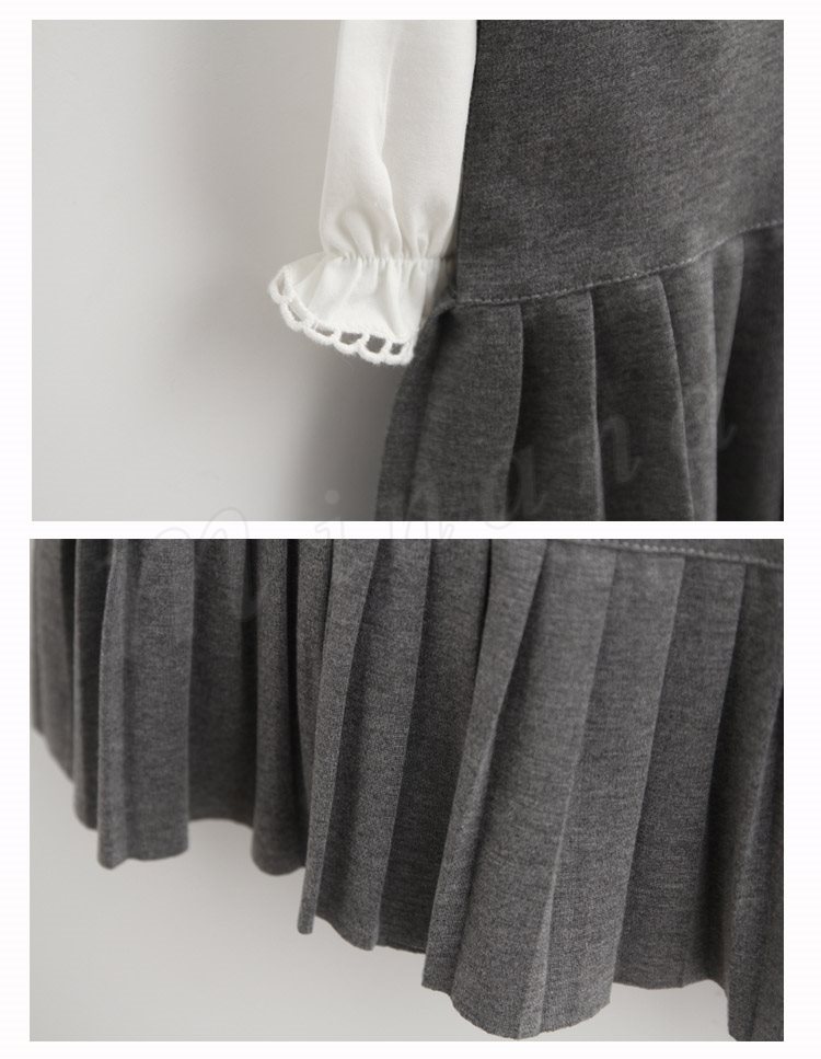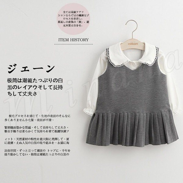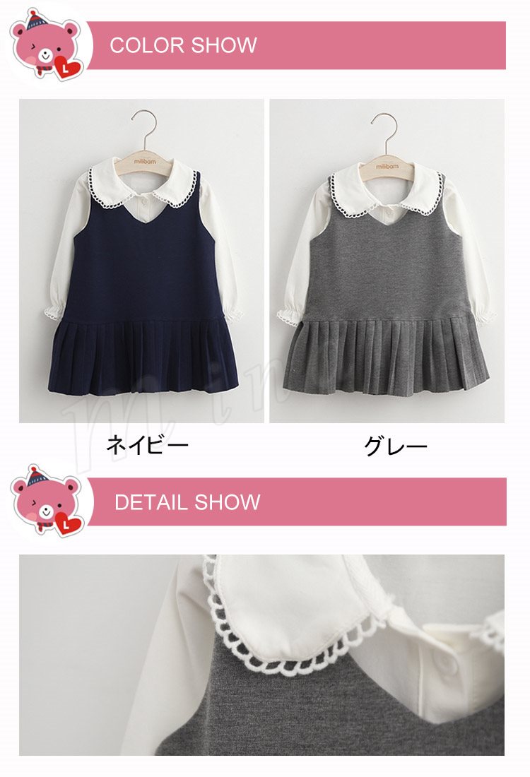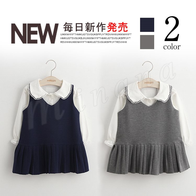 Tシャツ&ワンピース 2点セット 長袖 キャミワンピース プリーツワンピ 無地 折襟 子供服 丸襟 無地Tシャツ ミニワンピース
