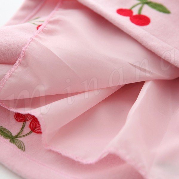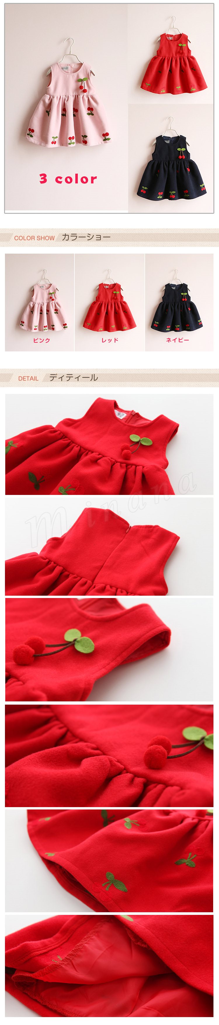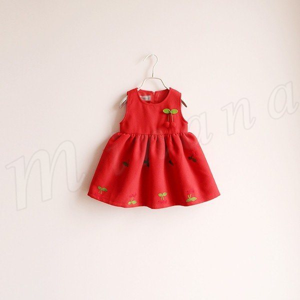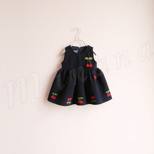 送料無料子供 ワンピース 袖なし 刺繍 フレア Aライン インナー ベスト さくらんぼ模様 ミニワンピ ショートワンピ クルーネック