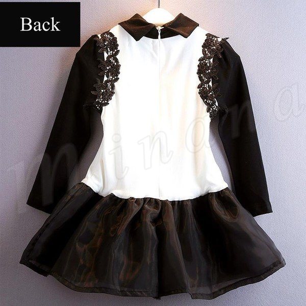 送料無料長袖ワンピース レース切り替え ドッキング フレアワンピ Aライン プリンセス 女の子 女児 ジュニア 七五三 春秋 レース 子どもドレス