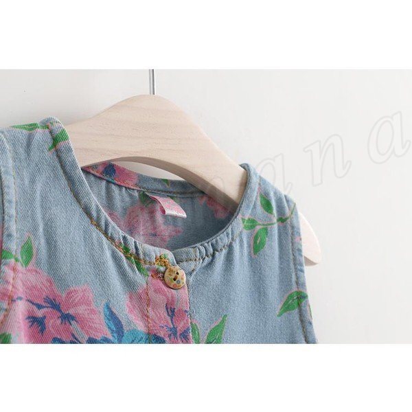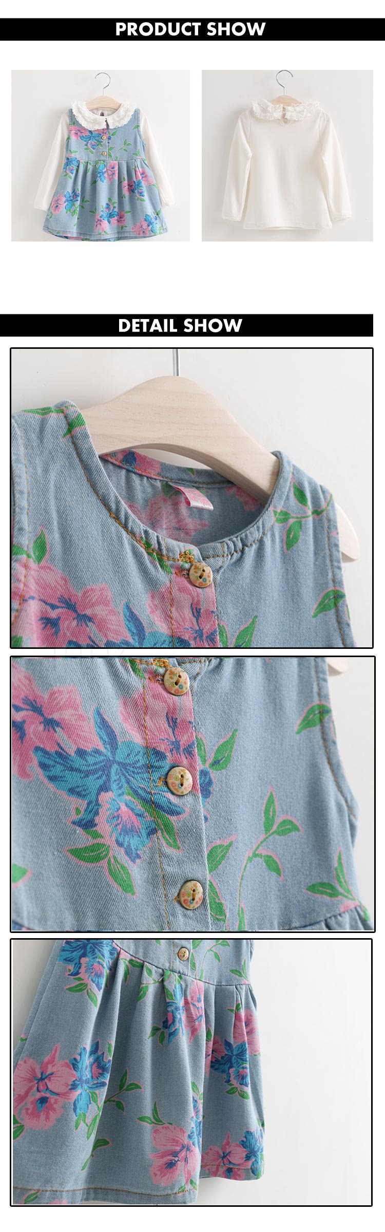 送料無料デニム 花柄 2点セット ボタン付き レース シャツ フラワー長袖 春秋 レースシャツ ボタン 白シャツ 派手 女の子 女児 ワンピース