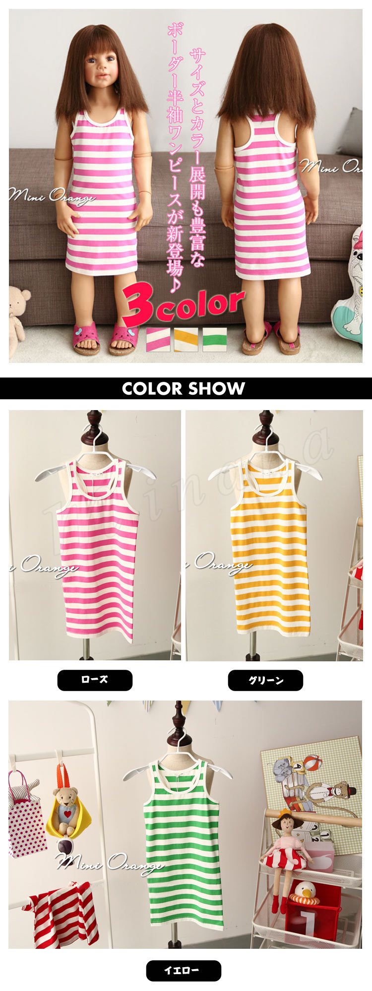 カラフル ボーラーYバックワンピース キッズ 子供 ワンピース ノースリーブ ランドネック ボーダー柄 ジュニア シンプル
