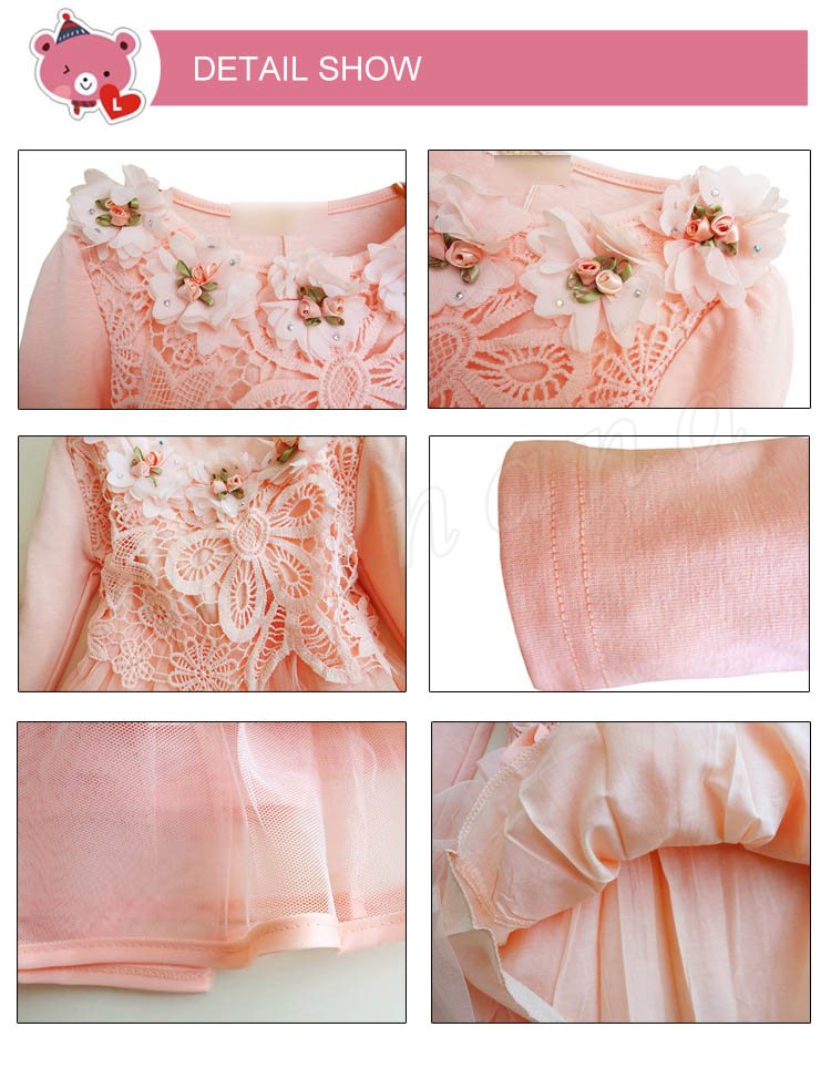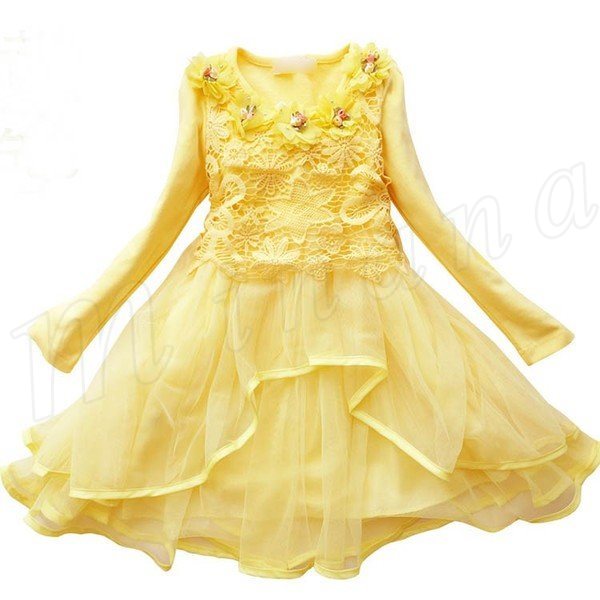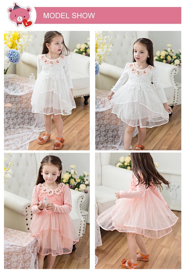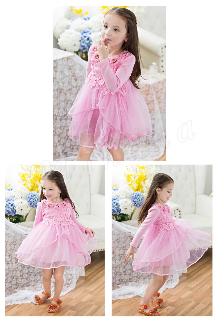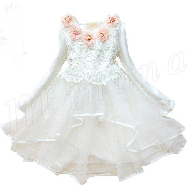 送料無料ワンピース 長袖 レースワンピース 花柄 花飾り チュチュワンピース チュール ダンス衣装 姫様 膝丈ワンピース パーティードレス