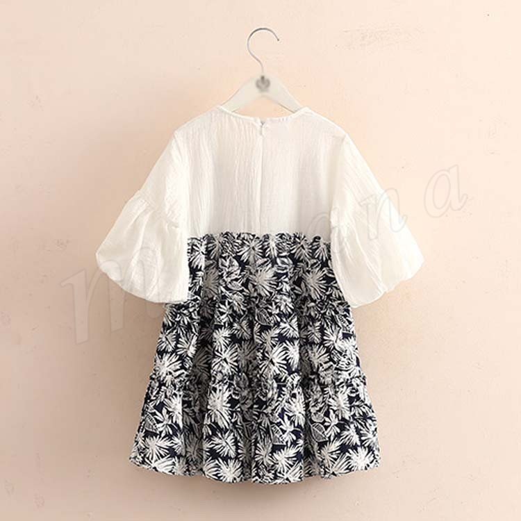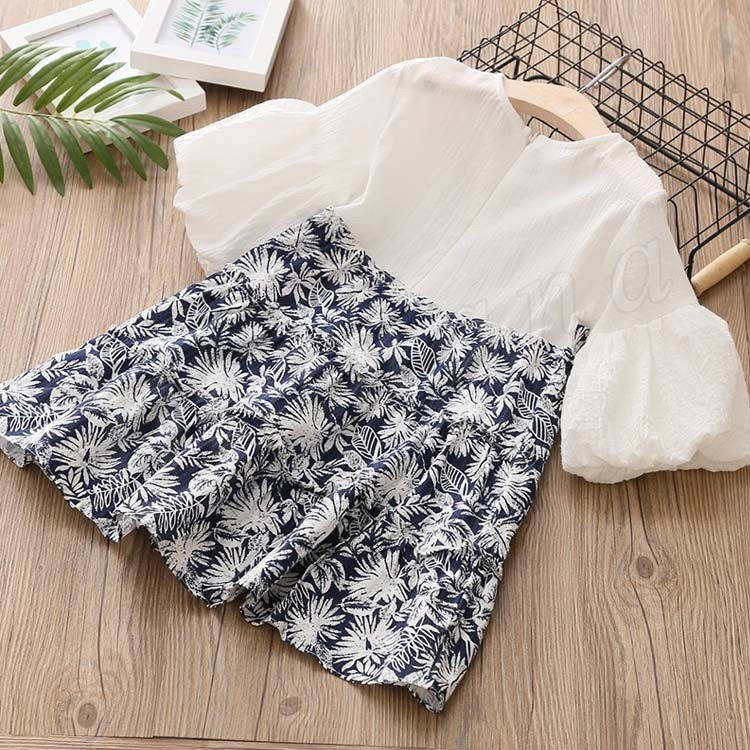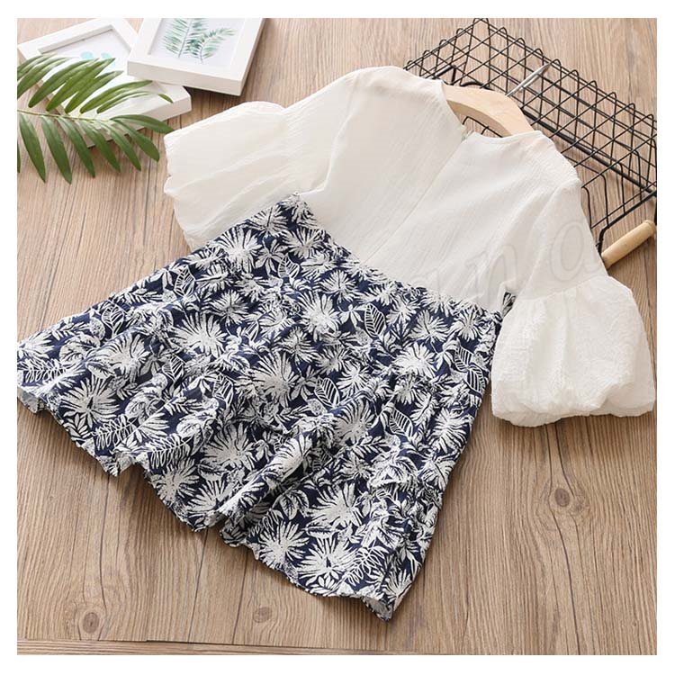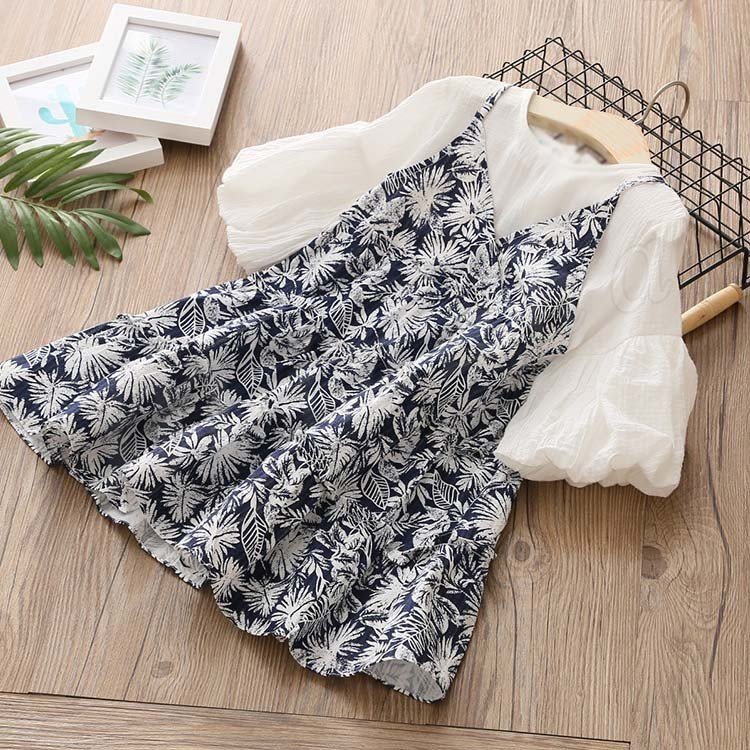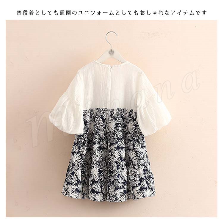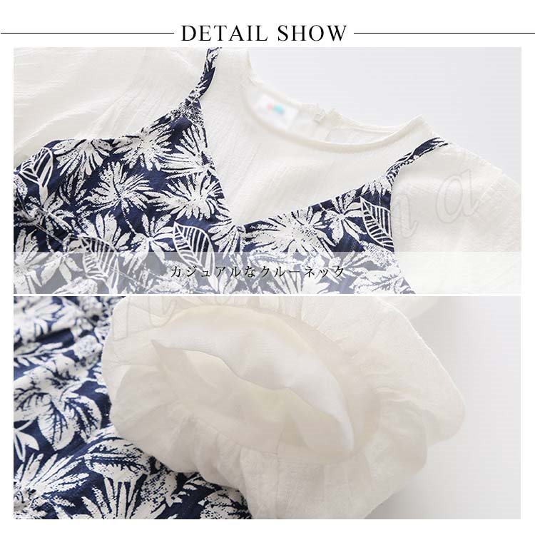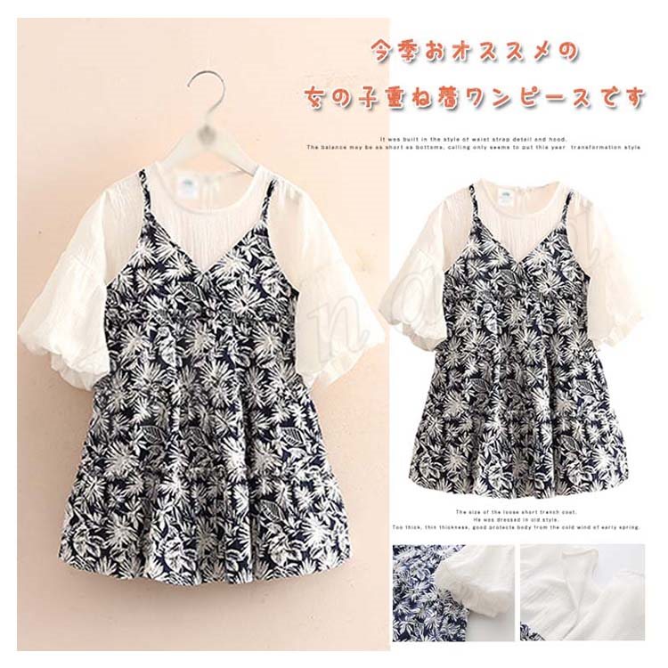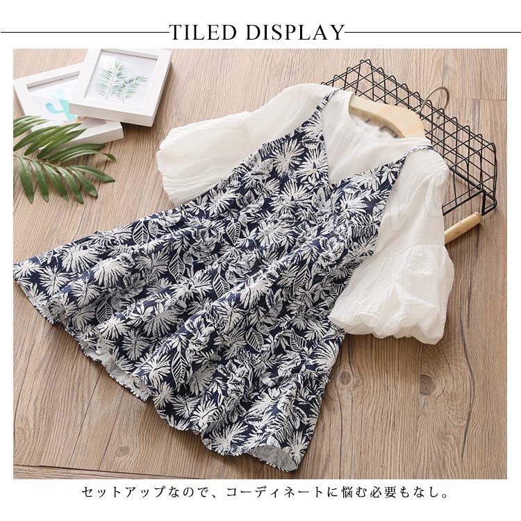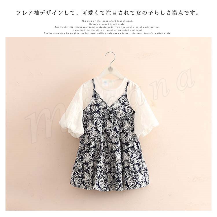 子供服 女の子ワンピース 重ね着風 ボタニカル柄 フレア袖 おしゃれ かわいい キッズ服 お出かけ 通園 入園式 入学式 発表会 プリ