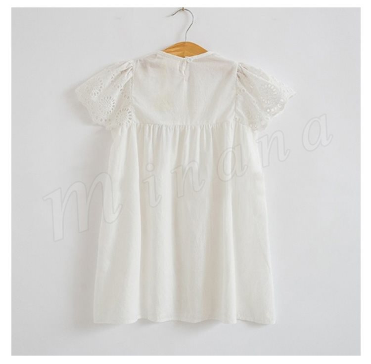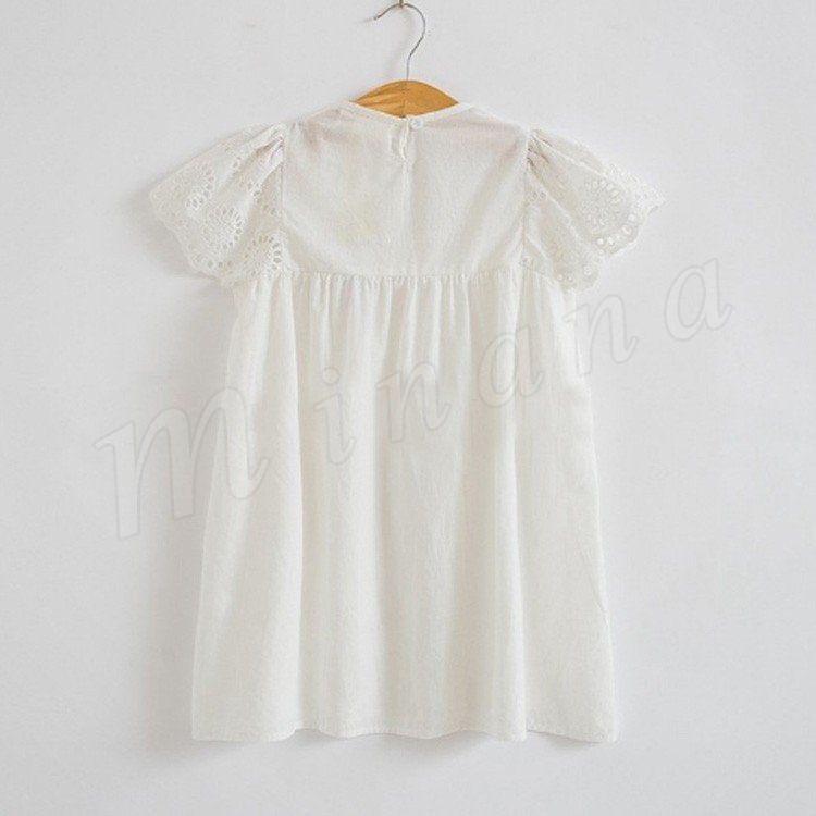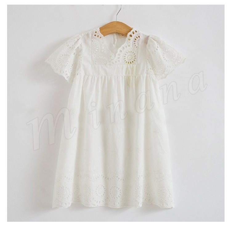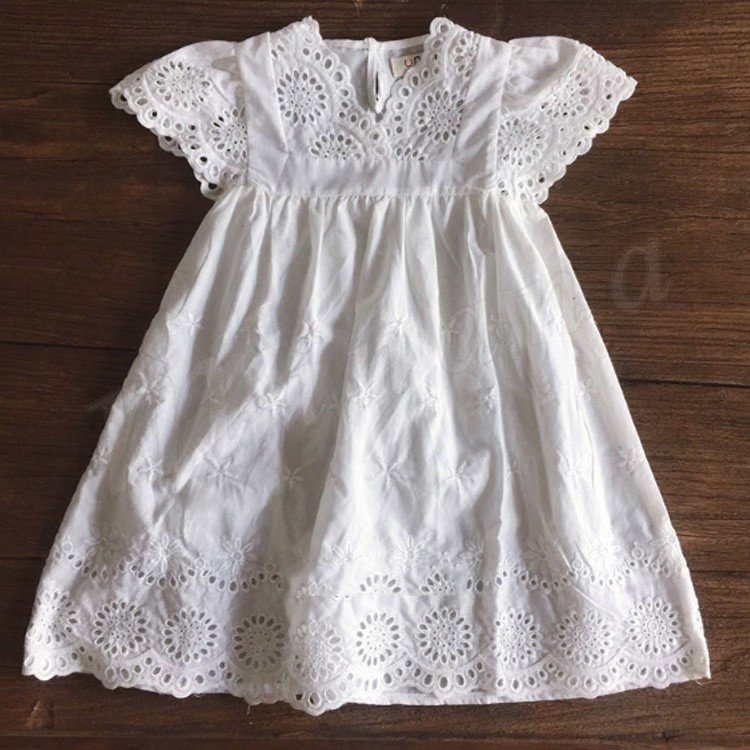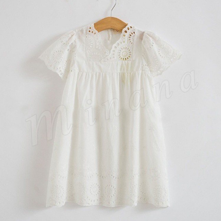 キッズ ワンピース 半袖 レース ドレス サマーワンピース コットン 綿 女の子 ガール 子供服 こども ホワイト 無地 春夏 夏服 新作