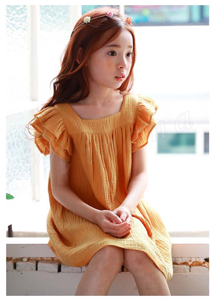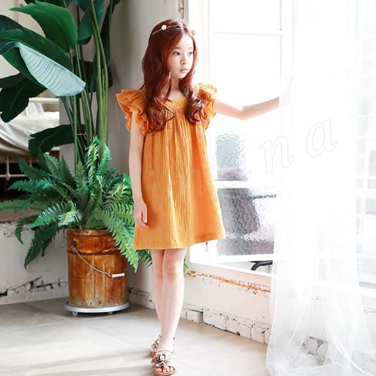 キッズ 子供服 こども 子ども 女の子 ガールズ ワンピース Aラインワンピース フリル袖 半袖 春夏