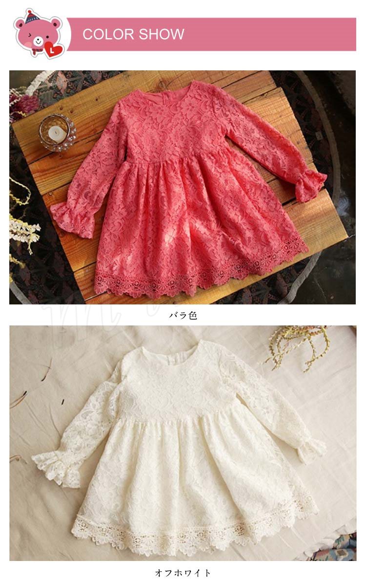 キッズ ワンピース ドレス フォーマル レース 長袖 女の子 入園式 入学式 卒園式 卒業式 結婚式 発表会 100 110 120 130