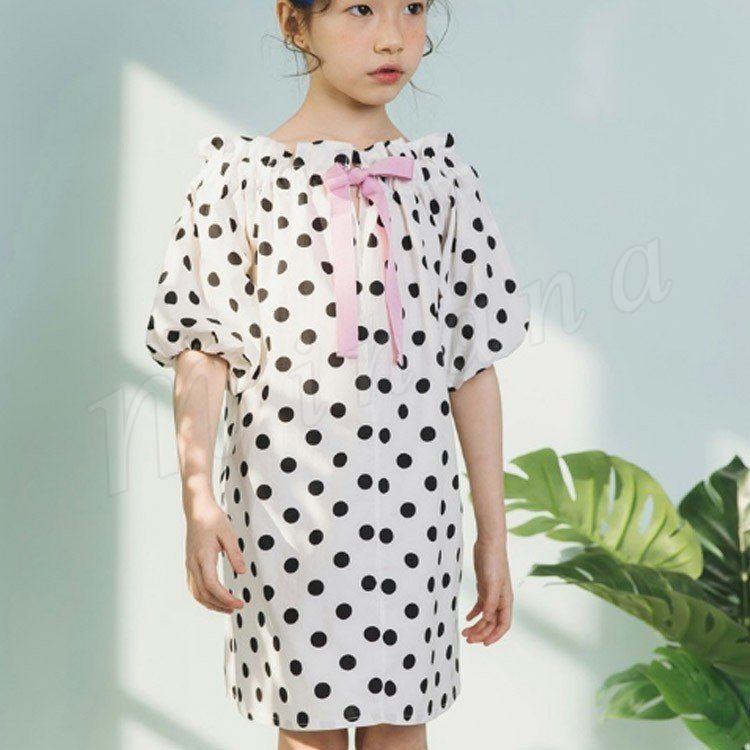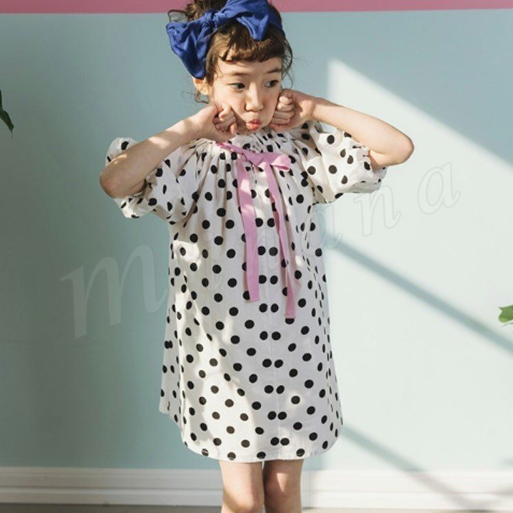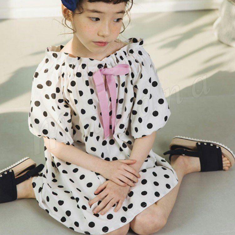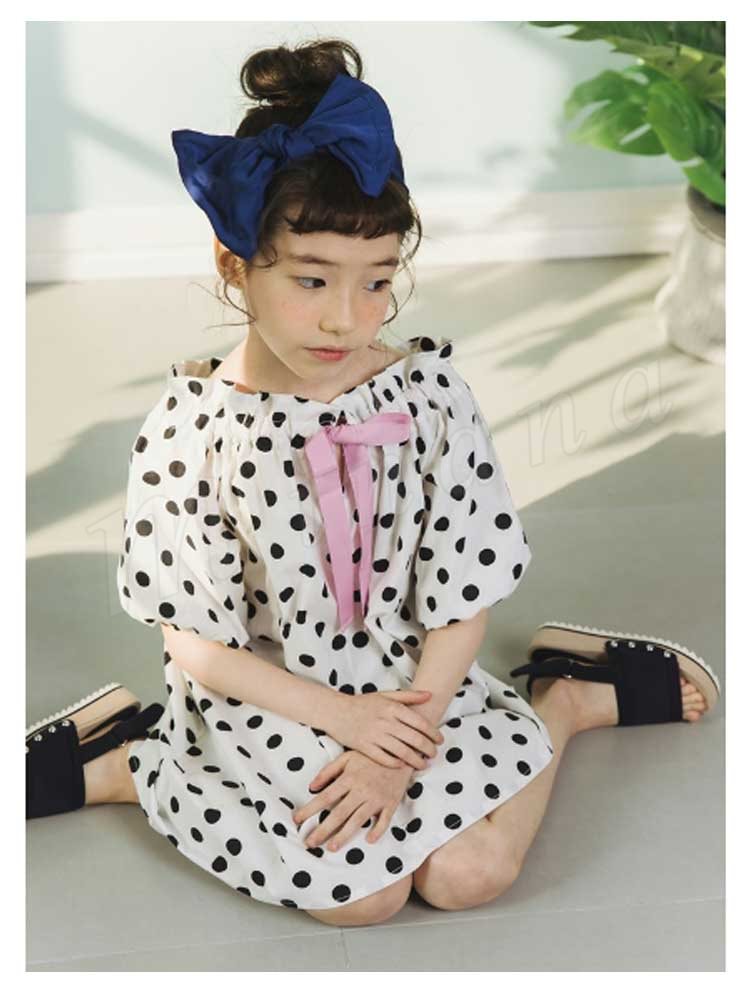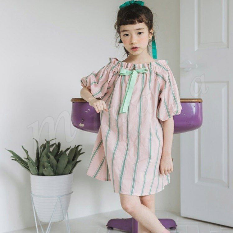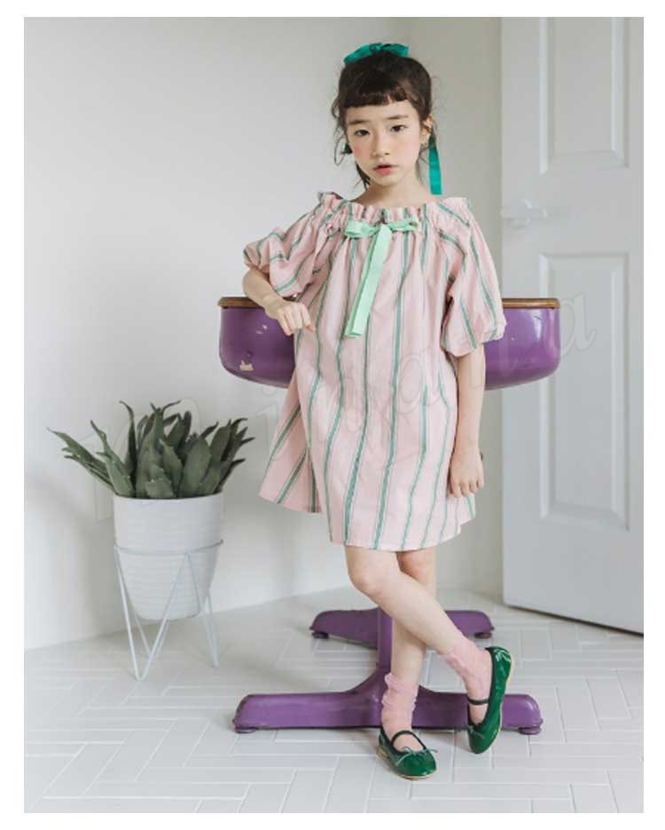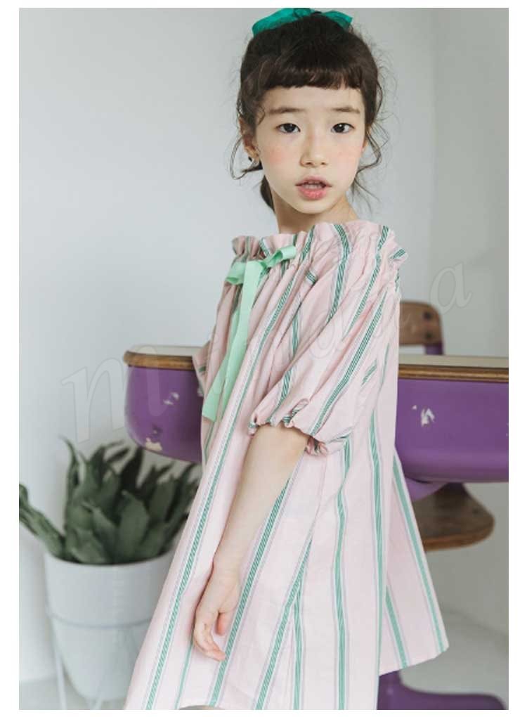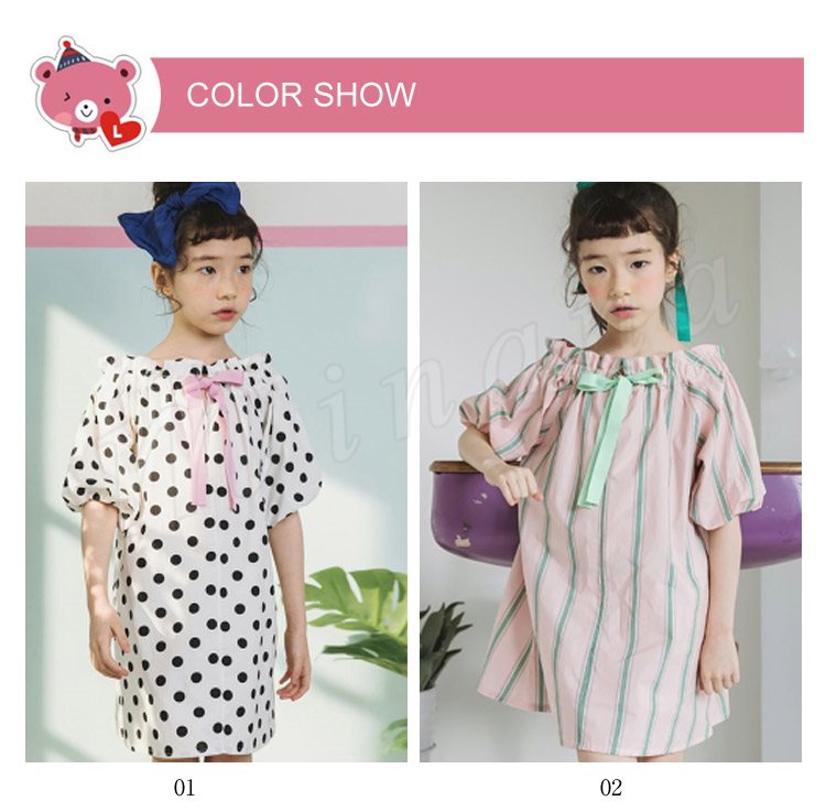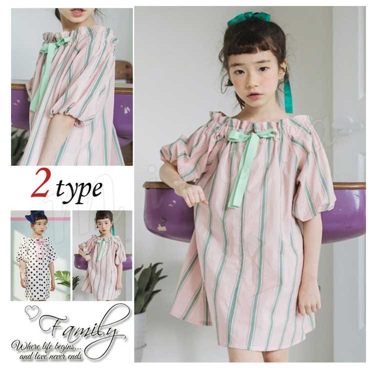 ●キッズ ワンピース オフショル オフショルダー 女の子 ガール 子供服 こども 子供 五分袖 半袖 スカート ストライプ ドット 水玉 リ