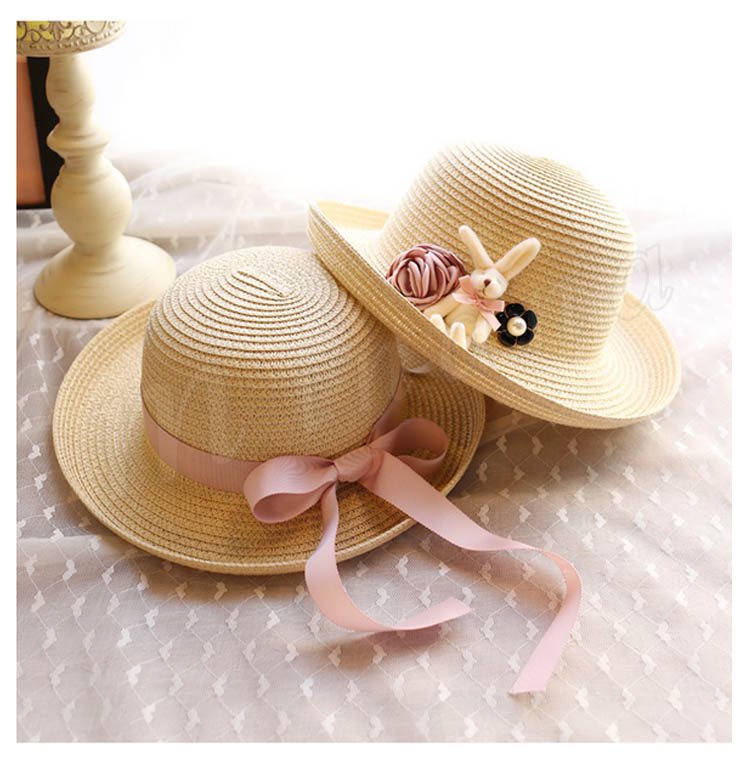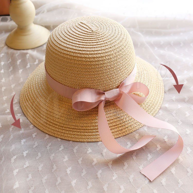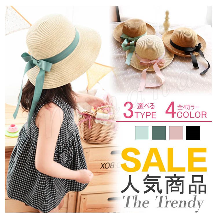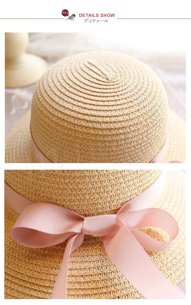 女の子 麦わら帽子 子供 キッズ ストローハット つば広 ハット 帽子 日よけ UVカット 小顔効果 紫外線対策帽子
