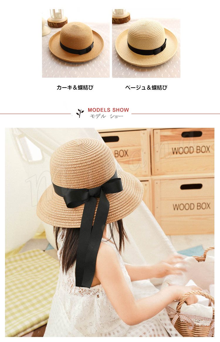 女の子 麦わら帽子 子供 キッズ ストローハット つば広 ハット 帽子 日よけ UVカット 小顔効果 紫外線対策 帽子 旅行 運