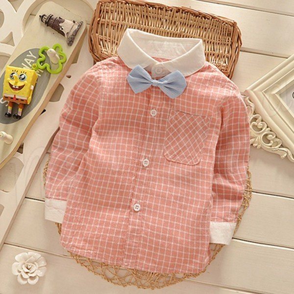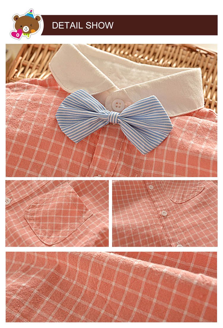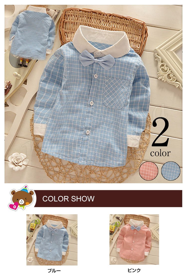 子供シャツ 長袖ブラウス チェック柄 折襟 前開き リボン ショート丈 フォーマル インナー キレイ目 シンプル