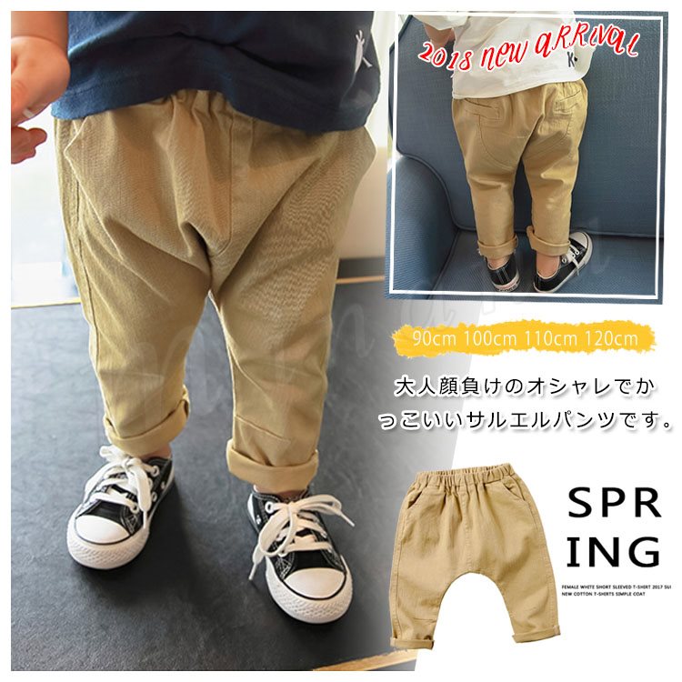 | 大人顔負けのオシャレでかっこいいサルエルパンツです。 ウエストゴムで楽々履き心地。 少し大き目サイズを、裾をロールアップして履くのもおすすめです。 お出かけにも、普段着としても大活躍間違いなし。 | |