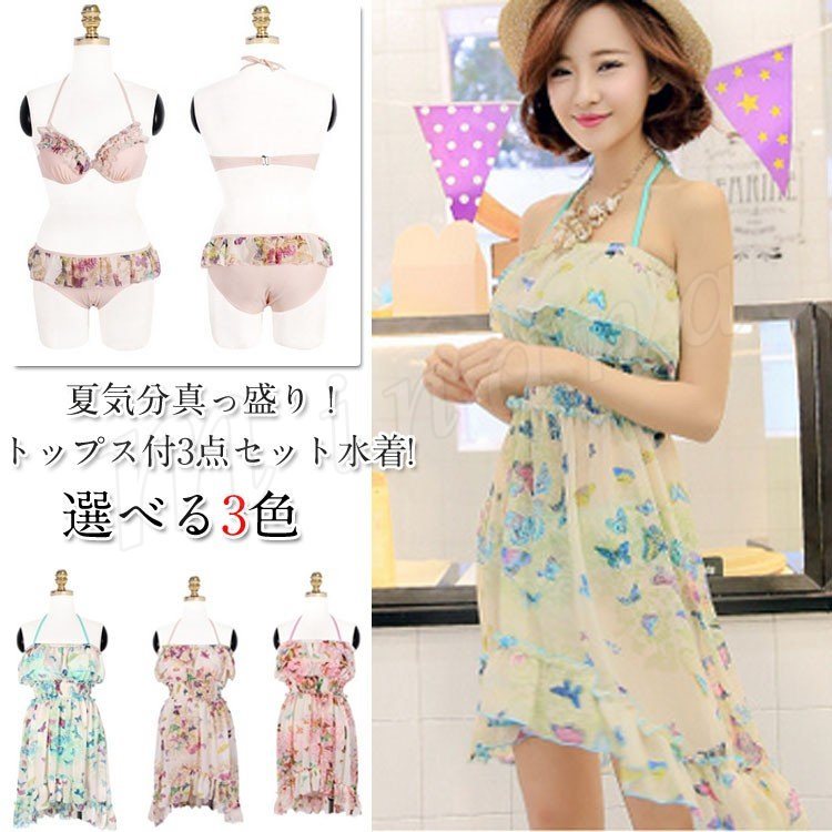 水着 レディース ビギニ 3点セット 体型カバー ワンピース 大きいサイズ 水着レディース セットアップ 花柄