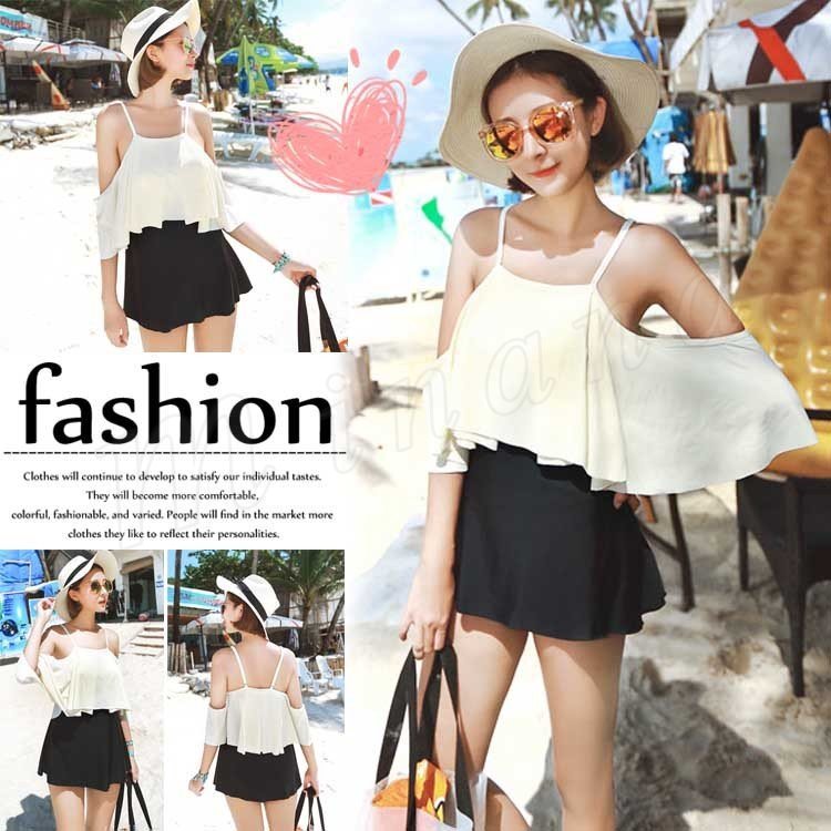タンキニ ビキニ 水着 レディース 2018年 新作 無地 オフショルダー オフショル 体型カバー