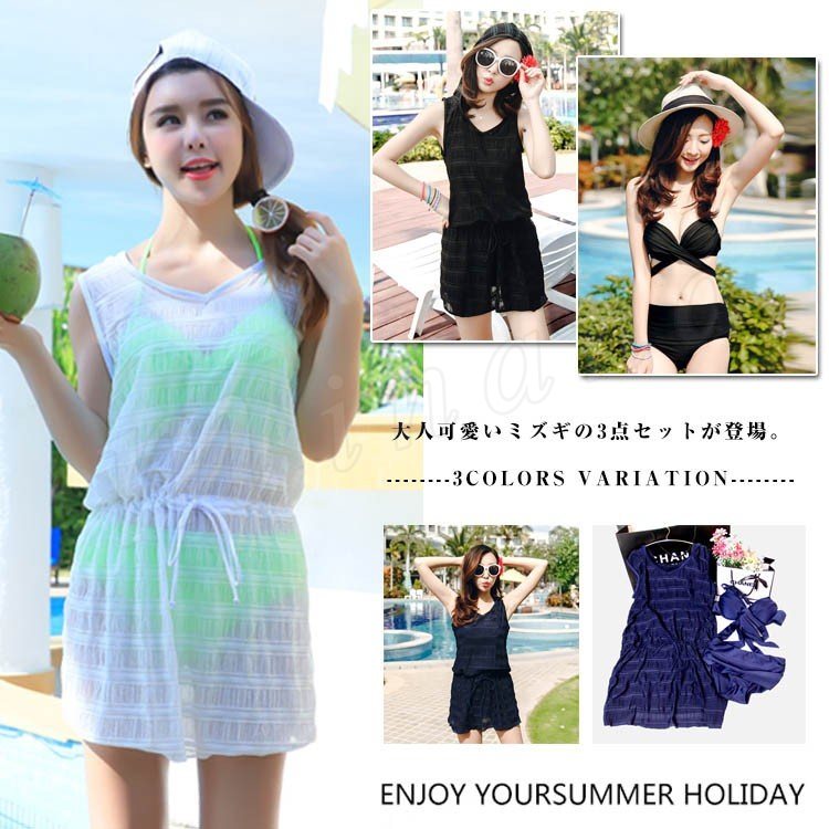 3点セット水着ビキニ水着レディースワンピース水着タンキニ水着体型カバーシースルートップスセクシー水着セットスカパン水着可愛い水