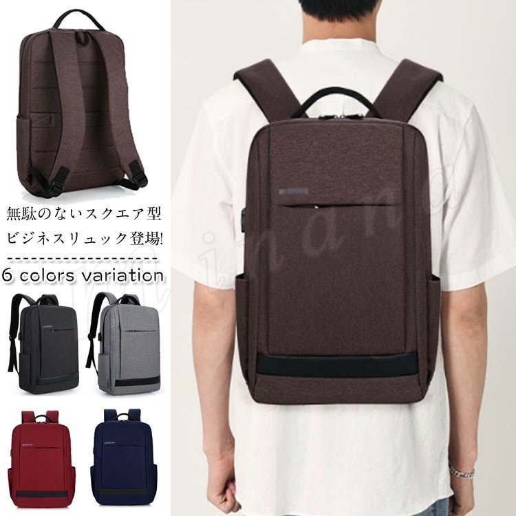 ビジネスバッグ ビジネスリュック メンズ 薄型 通勤 通学 バック リュック 軽量 防水 大容量 出張 旅行 15型PC対応 ビジネスリュック スクエ