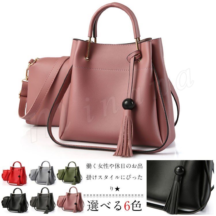 ショルダーバッグ 2点セット レディース ミニバッグ ポーチ タッセル チャーム付き 斜めがけ ビジネスバッグ ハンドバッグ 2way チャーム ハン