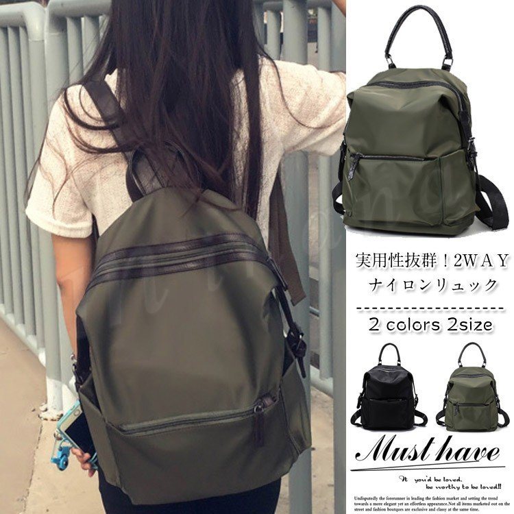 2WAY リュック バック カバン ナイロン 撥水加工 大容量 実用性 ビジネス 機能性 旅行 普段使い シンプル ファスナー付きポケット 取っ手付き