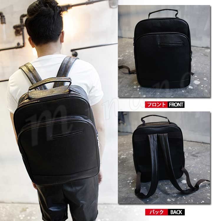 合皮 スクエア リュック 通勤 通学 リュックサック デイパック リュックバッグ バックパック レザー リュック バッグ カバン メンズ